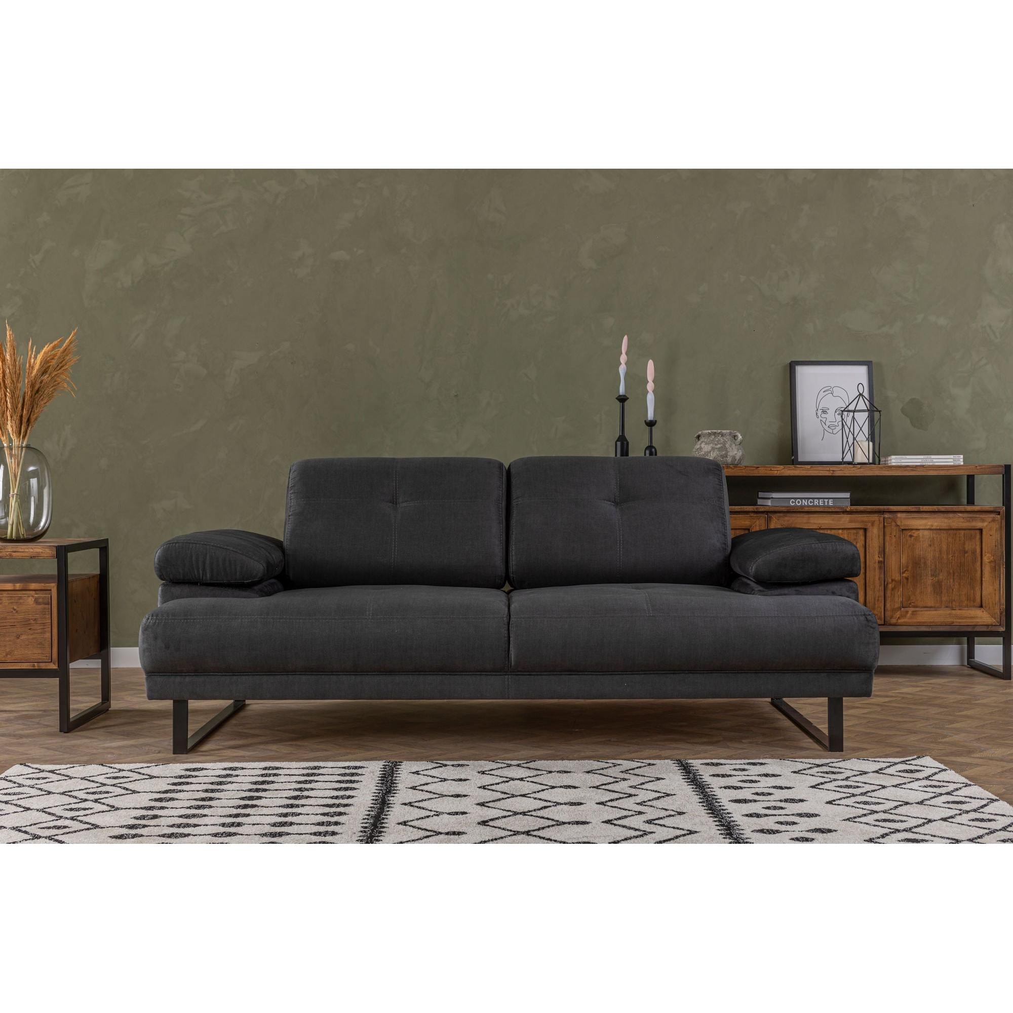 Az egyszínű antracit szín egy csipetnyi kifinomultságot kölcsönöz a helyiségnek, így ideális mind a szálloda ihlette, mind az ipari témájú enteriőrökhöz. A szárazon tisztítható szövet biztosítja a könnyű karbantartást, így a kanapéágy friss és hívogató megjelenésű marad.
