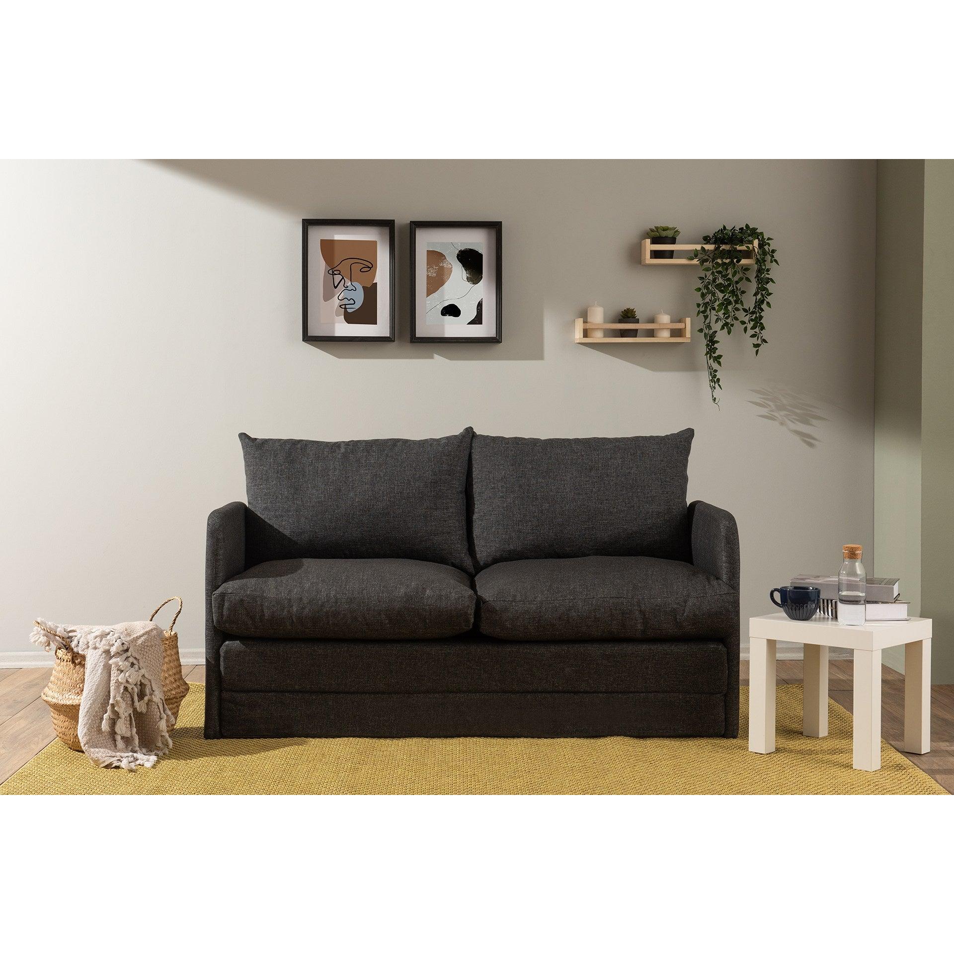 Ennek a kanapé-ágynak a sötétszürke színe kifinomultságot kölcsönöz bármely helyiségnek, és kiegészíti a különböző dekorációs stílusokat. Elegáns kialakítása és letisztult vonalvezetése sokoldalú darabot tesz belőle, amely könnyen alkalmazkodik a változó igényekhez.