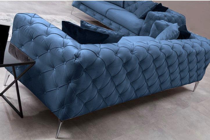 Modern és újszerű kialakításával kanapénk egy csipetnyi csillogást kölcsönöz lakótérének. A 100% poliészterből készült fényűző kék szövet nem csak vizuálisan vonzó, de a szárazon tisztítható tulajdonságának köszönhetően könnyen tisztítható is. A 4 mellékelt párna extra kényelmet és stílust biztosít.