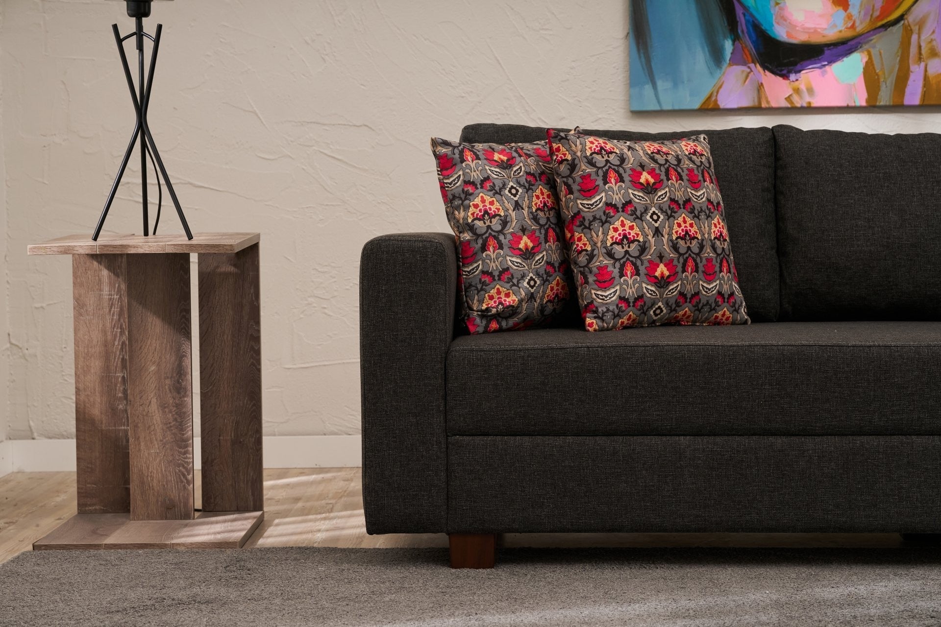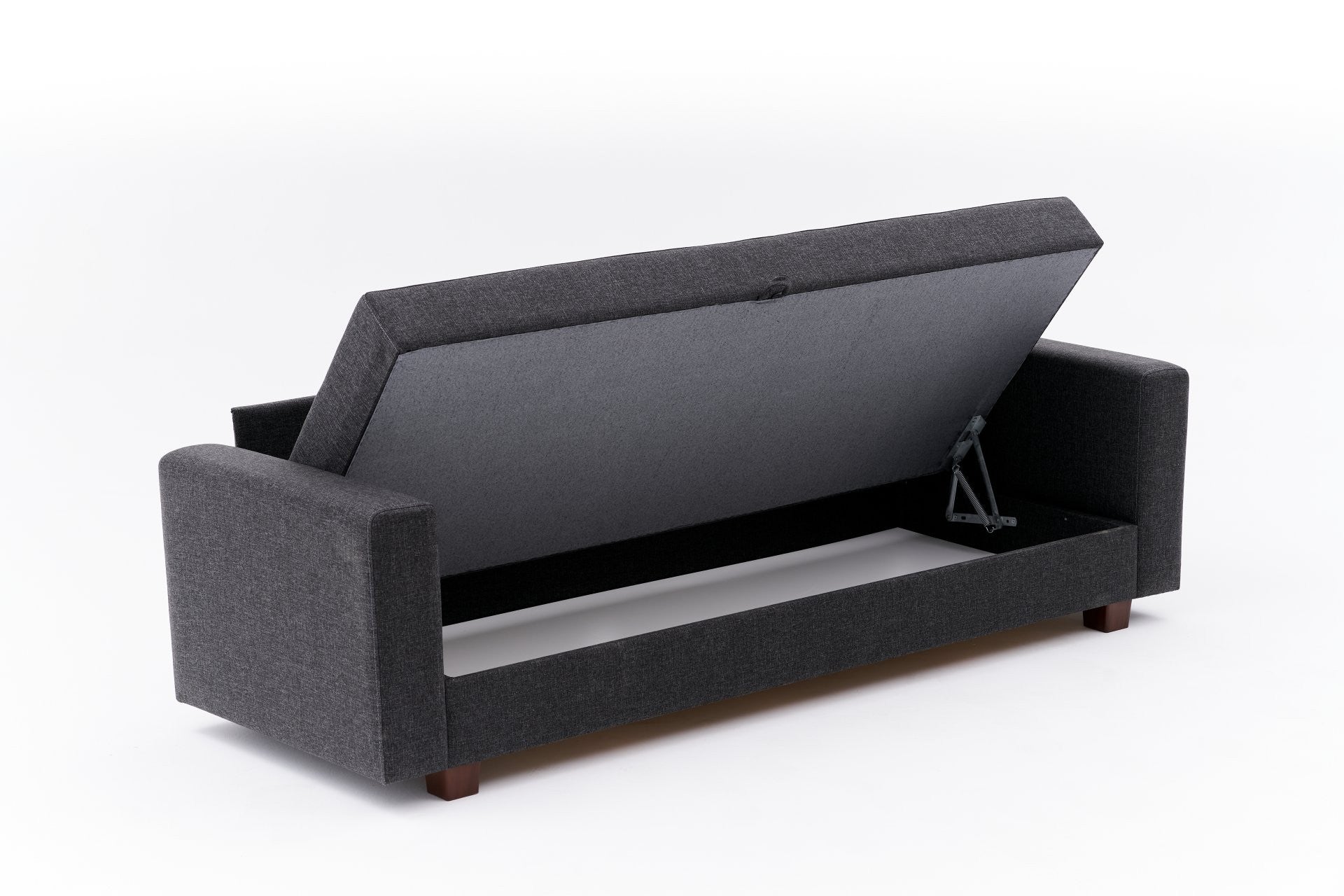 Masszív fa kerettel készült, 100% poliészter szövetbe kárpitozva, ez a kanapéágy a stílus és a tartósság jegyében készült. A 28 DNS közepesen kemény hab biztosítja a kényelmes ülési élményt, míg a letisztult dizájn és az antracit szín eleganciát kölcsönöz a térnek.
