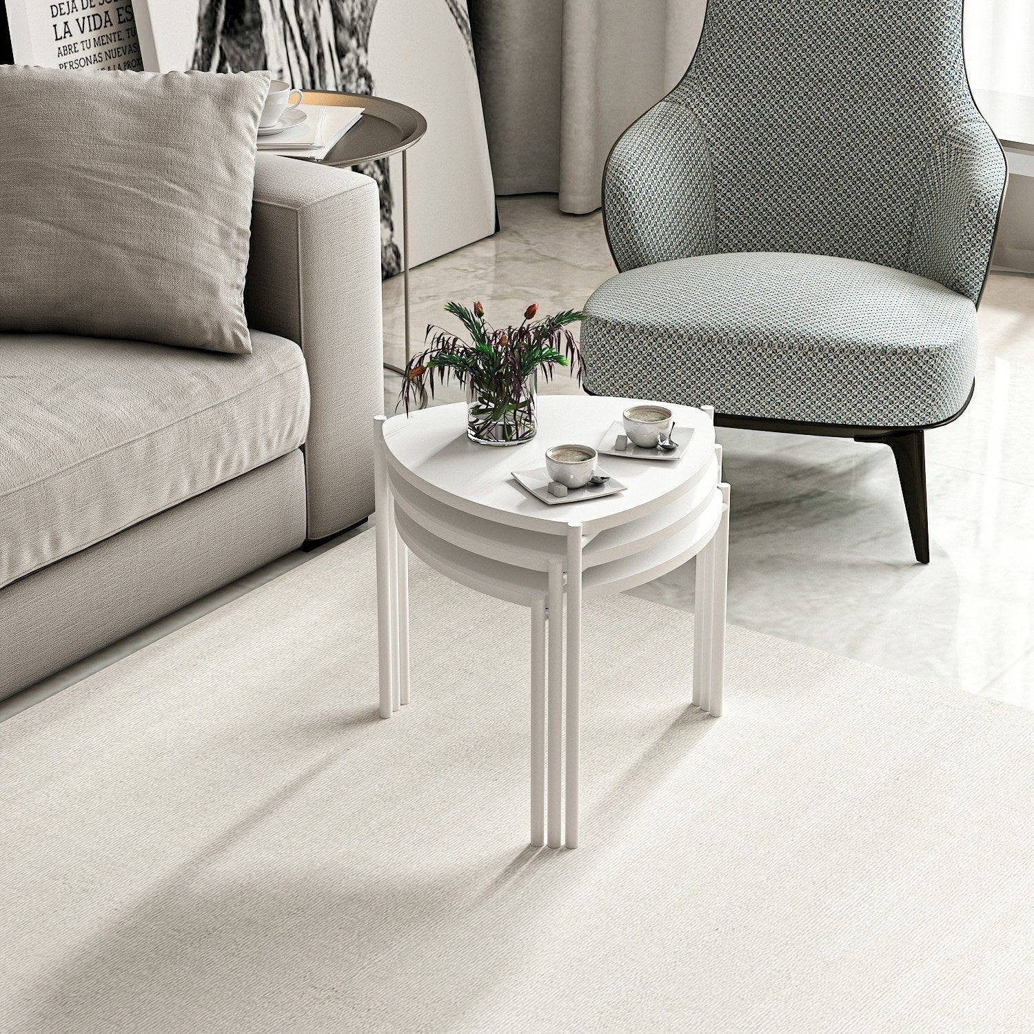 Fészekasztalaink letisztult vonalvezetése és elegáns fehér színe tökéletes kiegészítőjévé teszi őket bármilyen otthoni dekorációnak. Legyen az Ön stílusa kortárs, minimalista vagy hagyományos, ezek az asztalok zökkenőmentesen illeszkednek, és eleganciát kölcsönöznek a térnek.