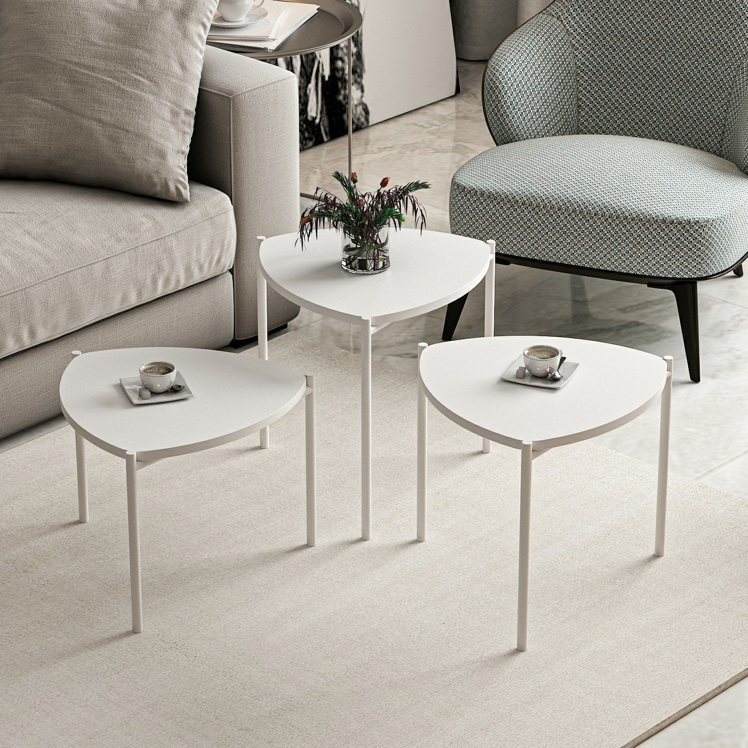 A három különböző méretű, egymásba illeszthető asztalok végtelen lehetőséget kínálnak a tér elrendezéséhez és díszítéséhez. Akár egy hangulatos olvasósarkot, egy elegáns kávésarkot vagy egy elegáns bemutatóhelyet szeretne kialakítani, ezek az asztalok könnyen elrendezhetők az Ön igényeinek megfelelően.