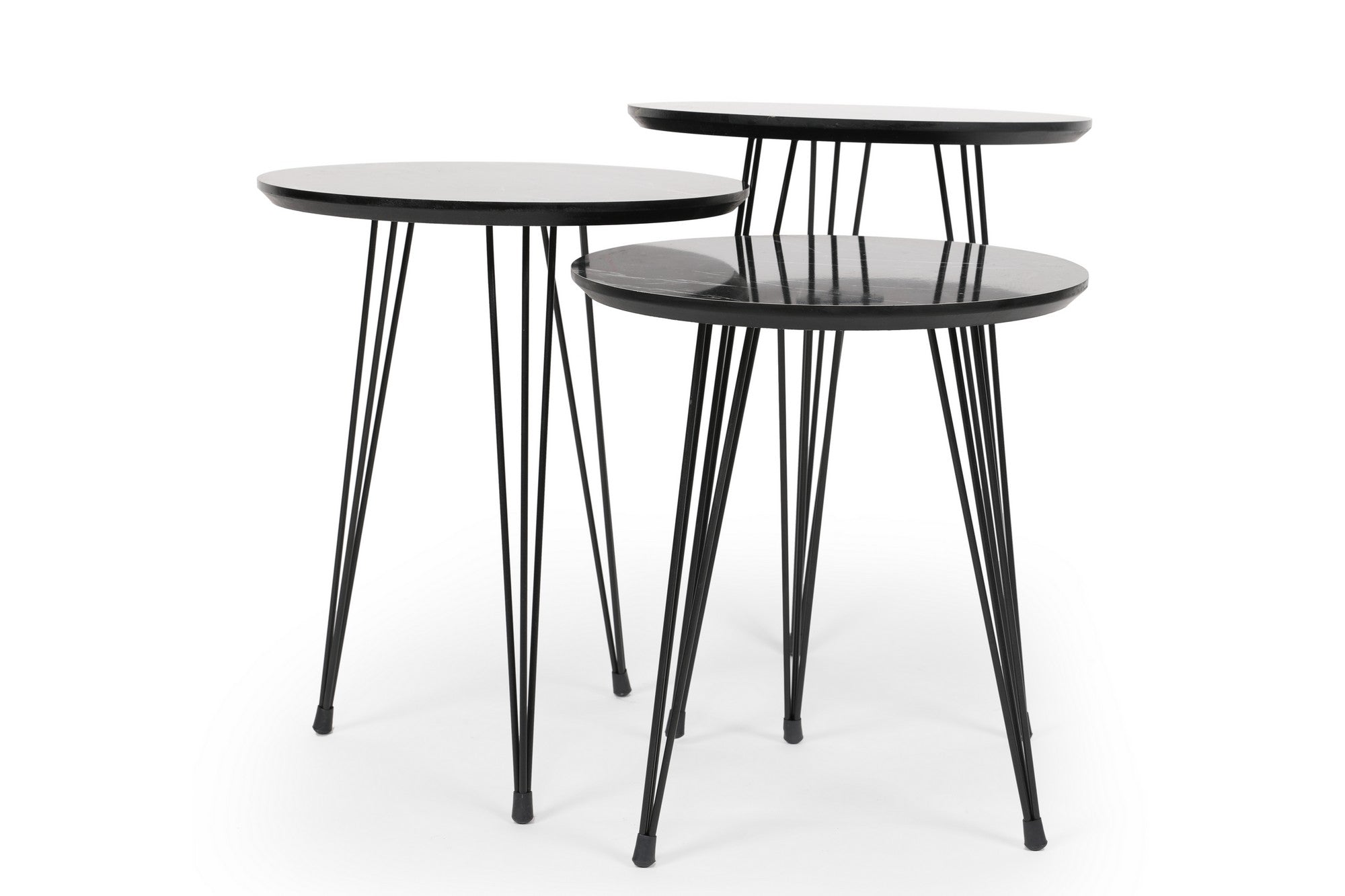 Ezek a fészkelőasztalok nemcsak lenyűgözően néznek ki, hanem hihetetlenül praktikusak is. A három különböző méret lehetővé teszi, hogy különböző konfigurációkban rendezd el őket az igényeidnek megfelelően. Használja őket készletként az egységes megjelenés érdekében, vagy válassza szét őket, hogy további felületet teremtsen a vendéglátás során.