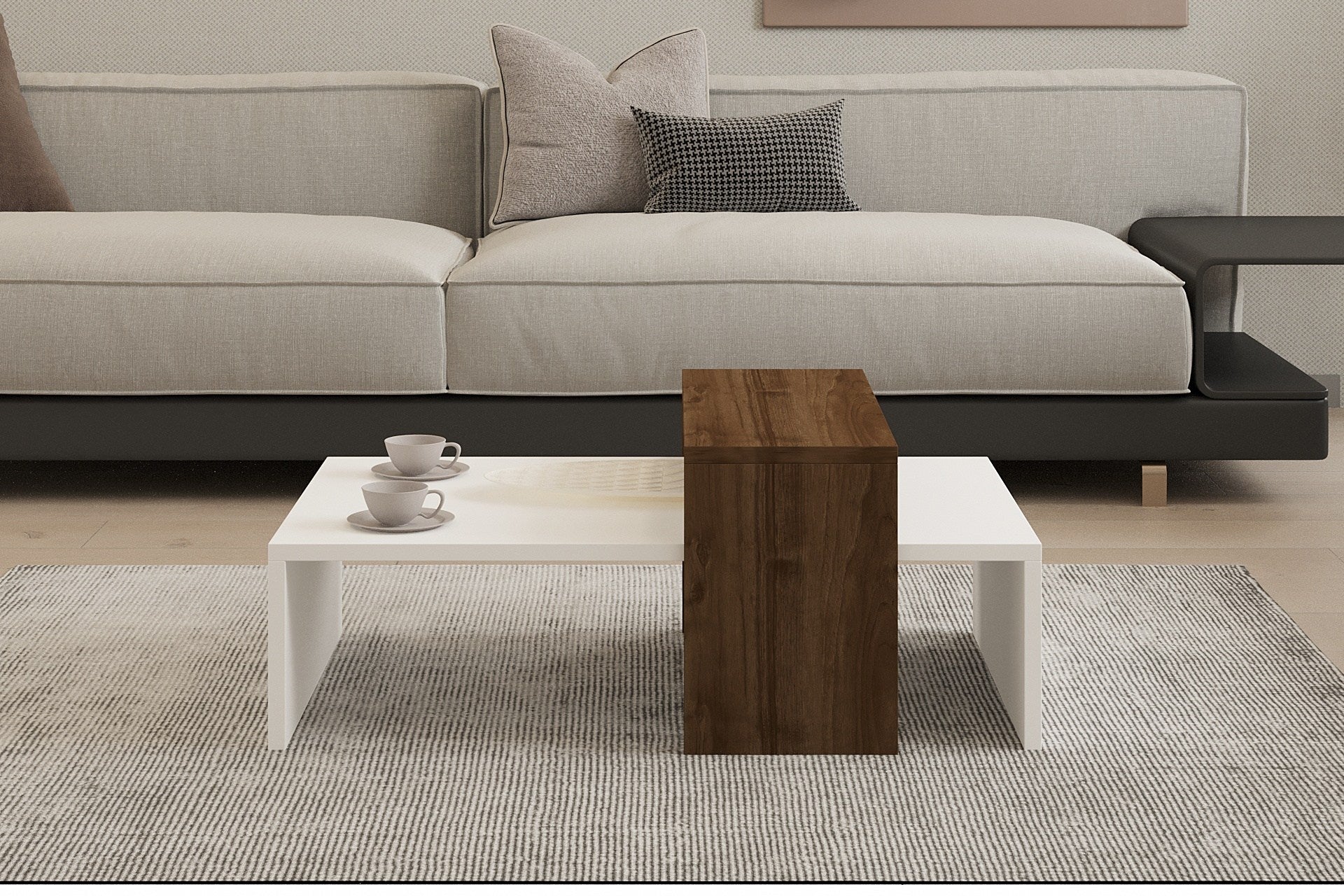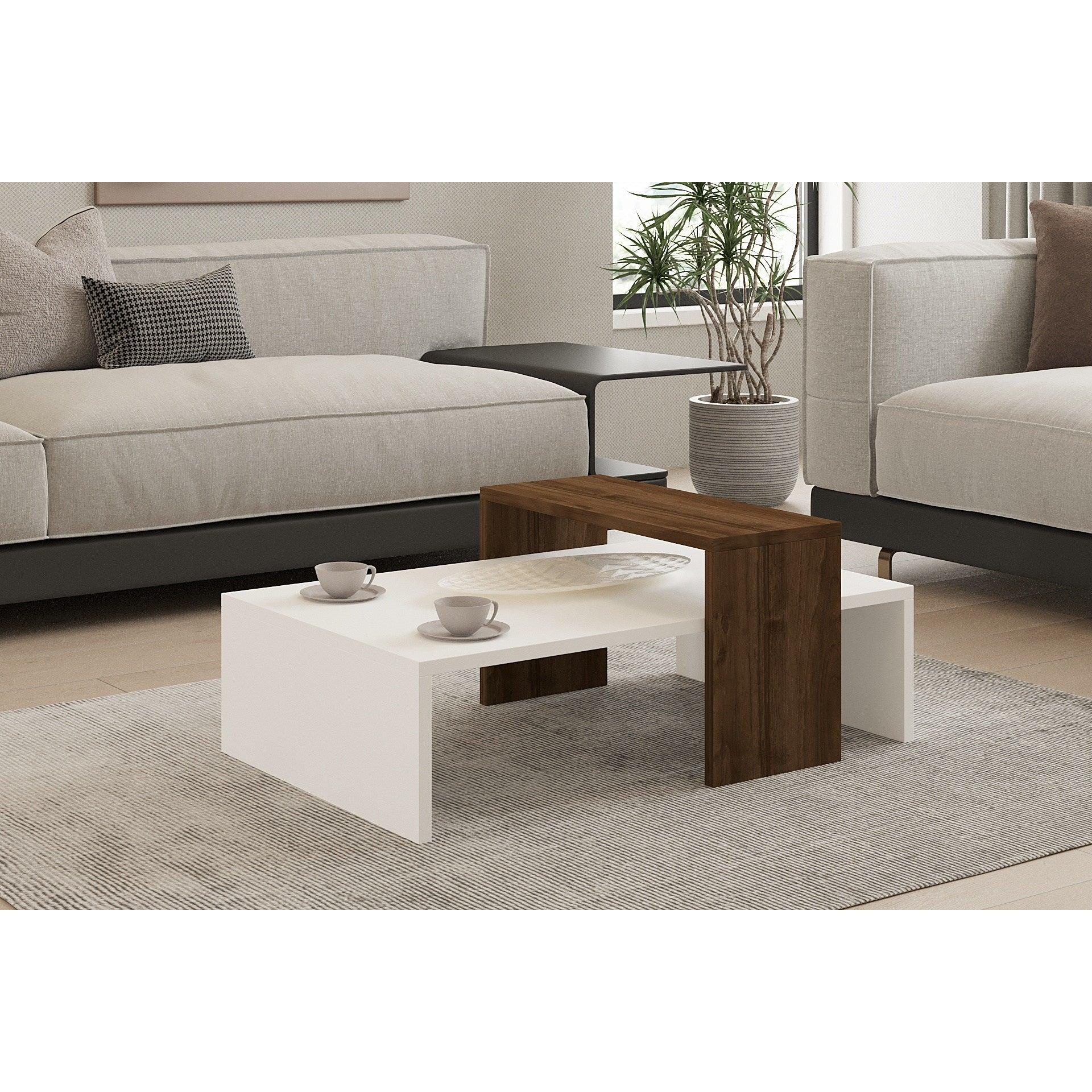 A diófa és a fehér színkombináció modernitást és eleganciát kölcsönöz bármely lakótérnek. Ennek a dohányzóasztalnak a karcsú kialakítása és letisztult vonalvezetése tökéletesen megtestesíti a skandináv koncepciót, harmonikus és hívogató légkört teremtve otthonában.