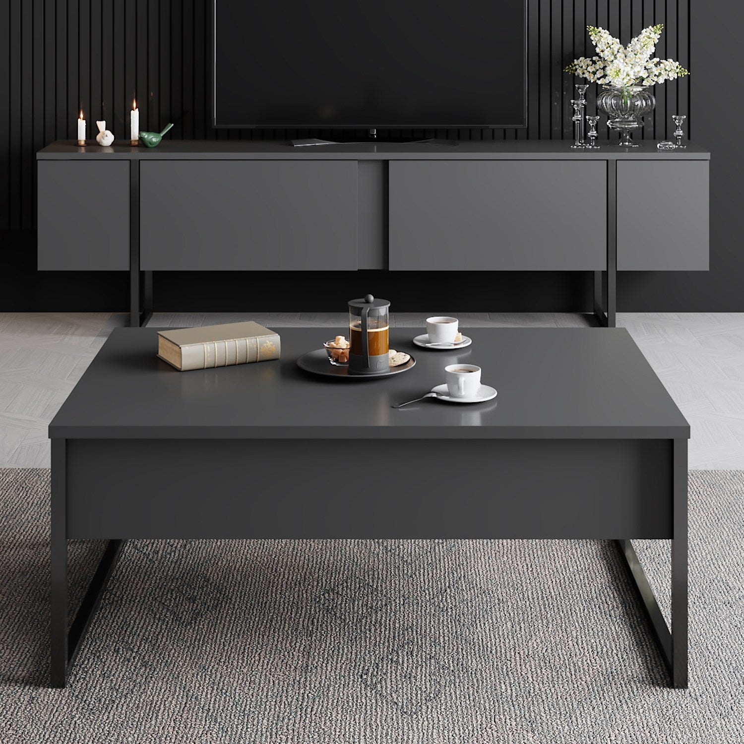 A dohányzóasztal az antracit és a fekete színkombináció magával ragadó színkombinációjával egy csipetnyi modernitást és eleganciát kölcsönöz a lakótérnek. Ez a sokoldalú színösszeállítás könnyedén kiegészít bármilyen meglévő dekorációt, így otthonának zökkenőmentes kiegészítője lesz.