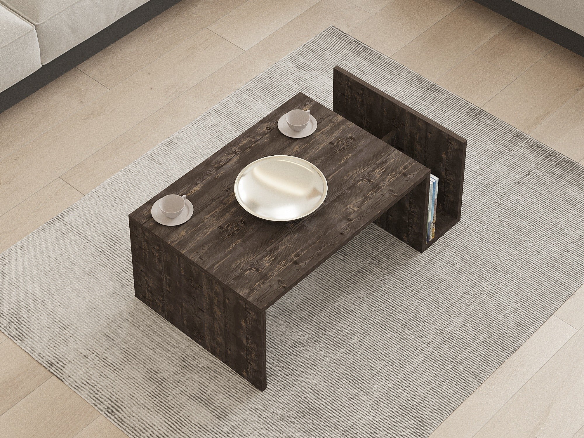 Elegáns és modern kialakításával ez a dohányzóasztal könnyedén illeszkedik bármilyen belsőépítészeti dekorációba. A szolid antracit szín egy csipetnyi kifinomultságot kölcsönöz neki, így tökéletes választás a kortárs és skandináv ihletésű terekbe. Az alsó polc további tárolóhelyet biztosít, lehetővé téve, hogy a nappali rendetlenségtől mentes legyen.