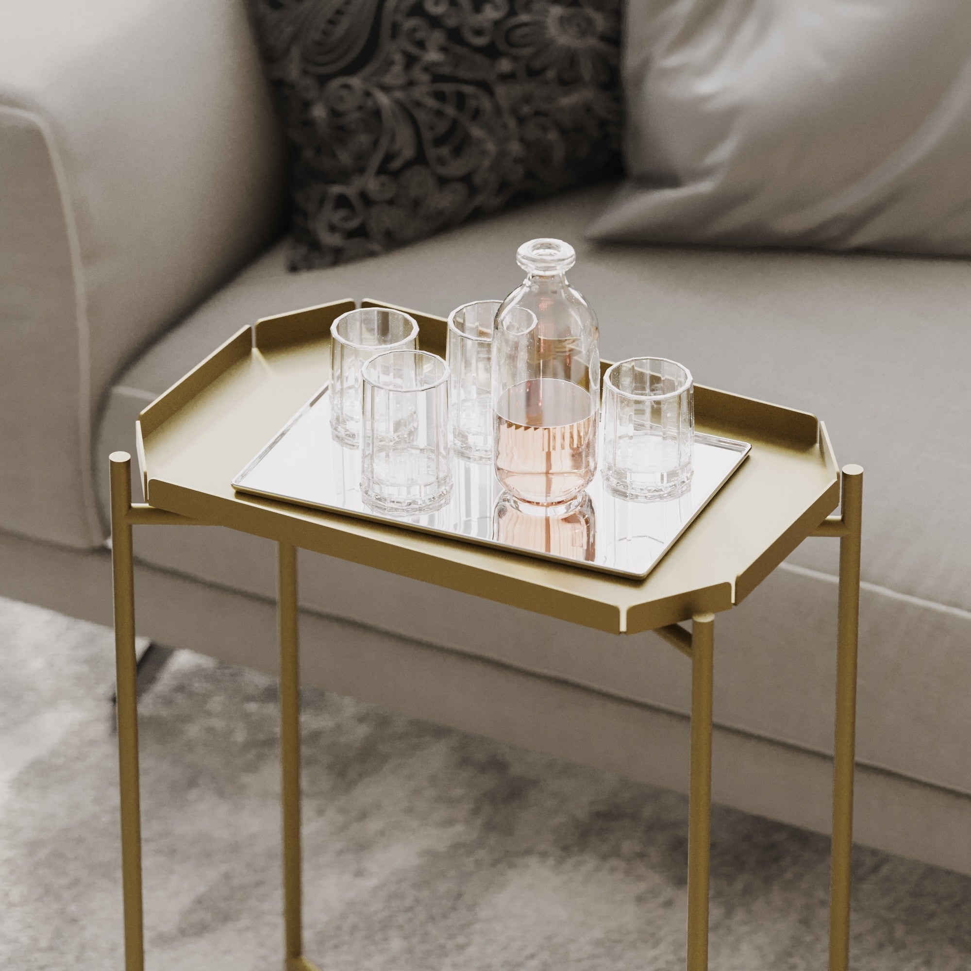 Engedje át magát a 100%-ban fémből készült, aprólékosan és tökéletesen kidolgozott dohányzóasztalunk pompájának. A ragyogó arany szín a luxus és a nagyszerűség érzését sugározza, azonnal feldobva bármely szoba hangulatát. Karcsú és modern kialakítása könnyedén illeszkedik bármilyen dekorációs stílushoz, így sokoldalú kiegészítője lesz otthonának.