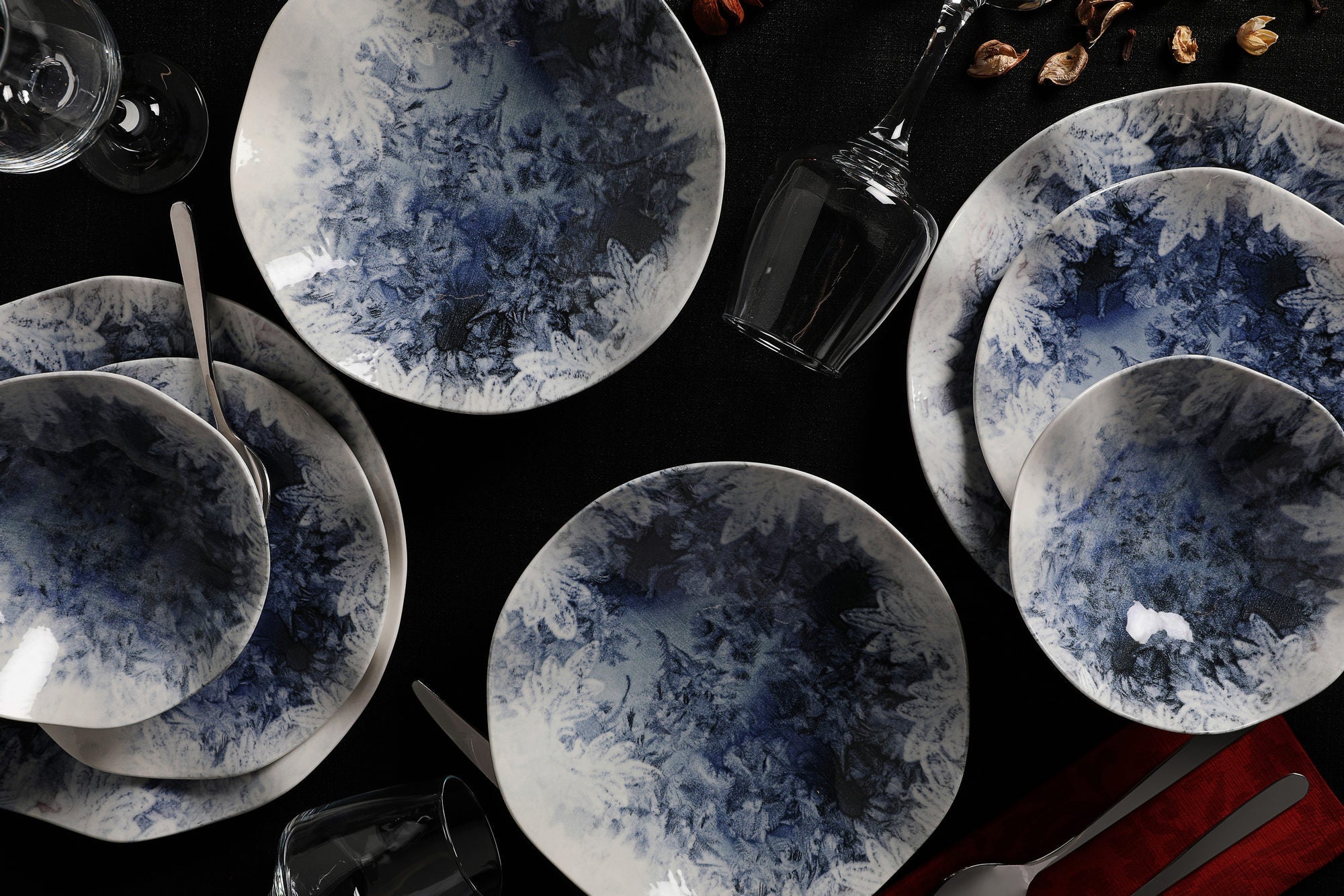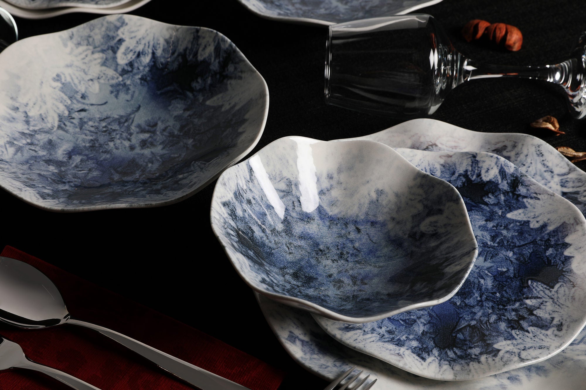 A 100% porcelánból készült étkészlet eleganciát és kifinomultságot sugároz, és egy kis luxust kölcsönöz az étkezőasztalának. A kék és fehér színek gyönyörű kombinációja vizuálisan lenyűgöző kontrasztot teremt, amely lenyűgözi vendégeit, és maradandó benyomást hagy.