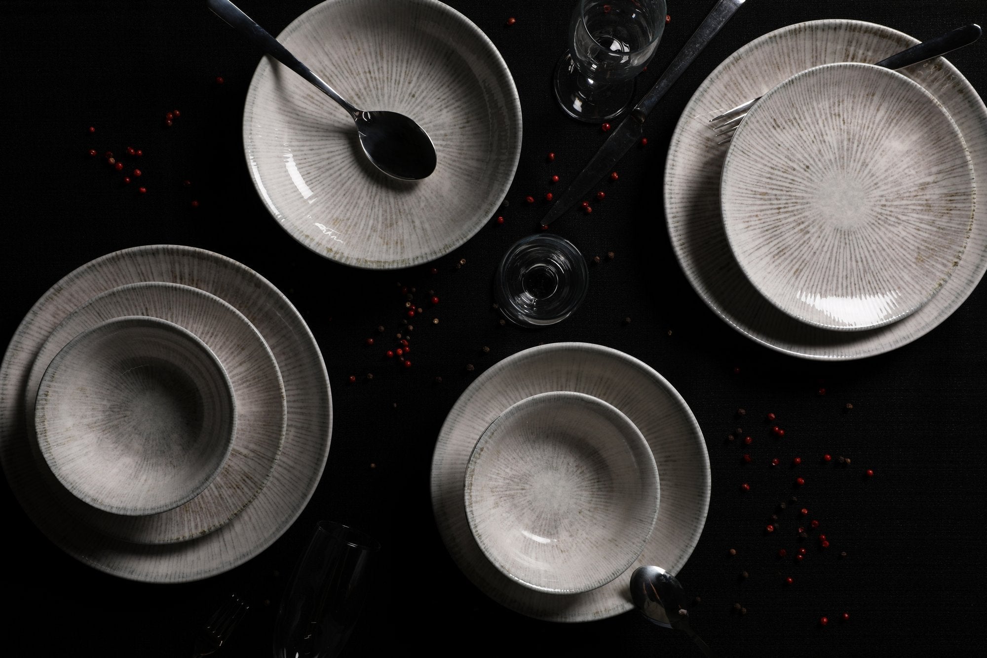 Karcsú és modern kialakításával a vacsora szettünk tökéletes mind alkalmi, mind formális étkezési alkalmakhoz. A mély lemezek ideálisak kiadós levesek és pörköltek kiszolgálására, míg a desszertlemezek édességet adnak az étkezéshez. A szervizlemezek bőséges helyet biztosítanak a főételekhez, és a tálak kiválóan alkalmasak a kedvenc levesek vagy gabonafélék élvezésére.