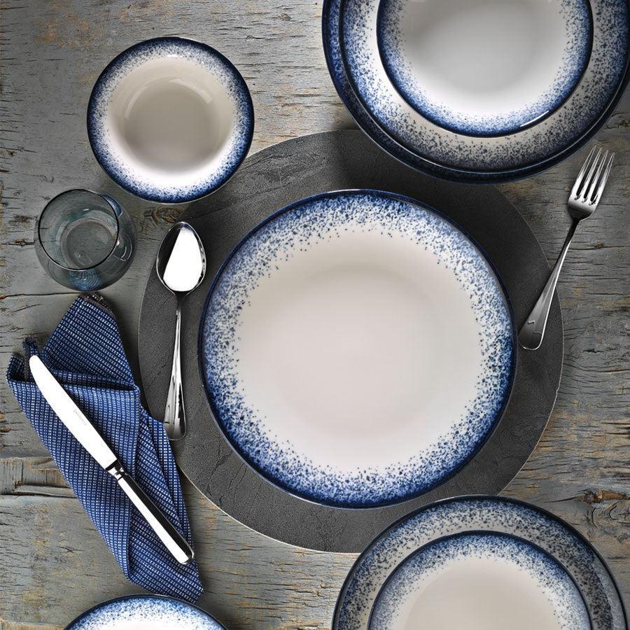 Az étkészletünk sötétkék és fehér színkombinációja kifinomultságot kölcsönöz bármely asztalterítésnek. Akár hivatalos vacsoraestet rendez, akár egy alkalmi étkezést élvez a családjával, ez az étkészlet könnyedén feldobja étkezőhelye hangulatát.