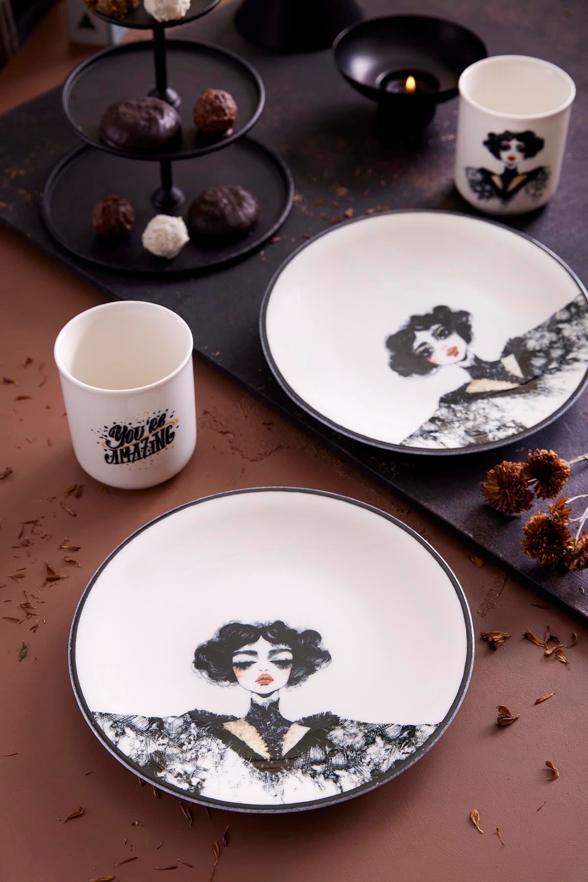 Ennek az étkészletnek a letisztult és modern dizájnja egy csipetnyi kifinomultságot ad bármely étkezéshez. A porcelán tányérok és kávéscsészék tiszta fehér színe eleganciát és stílust sugároz, így minden étkezés különleges alkalommá válik.