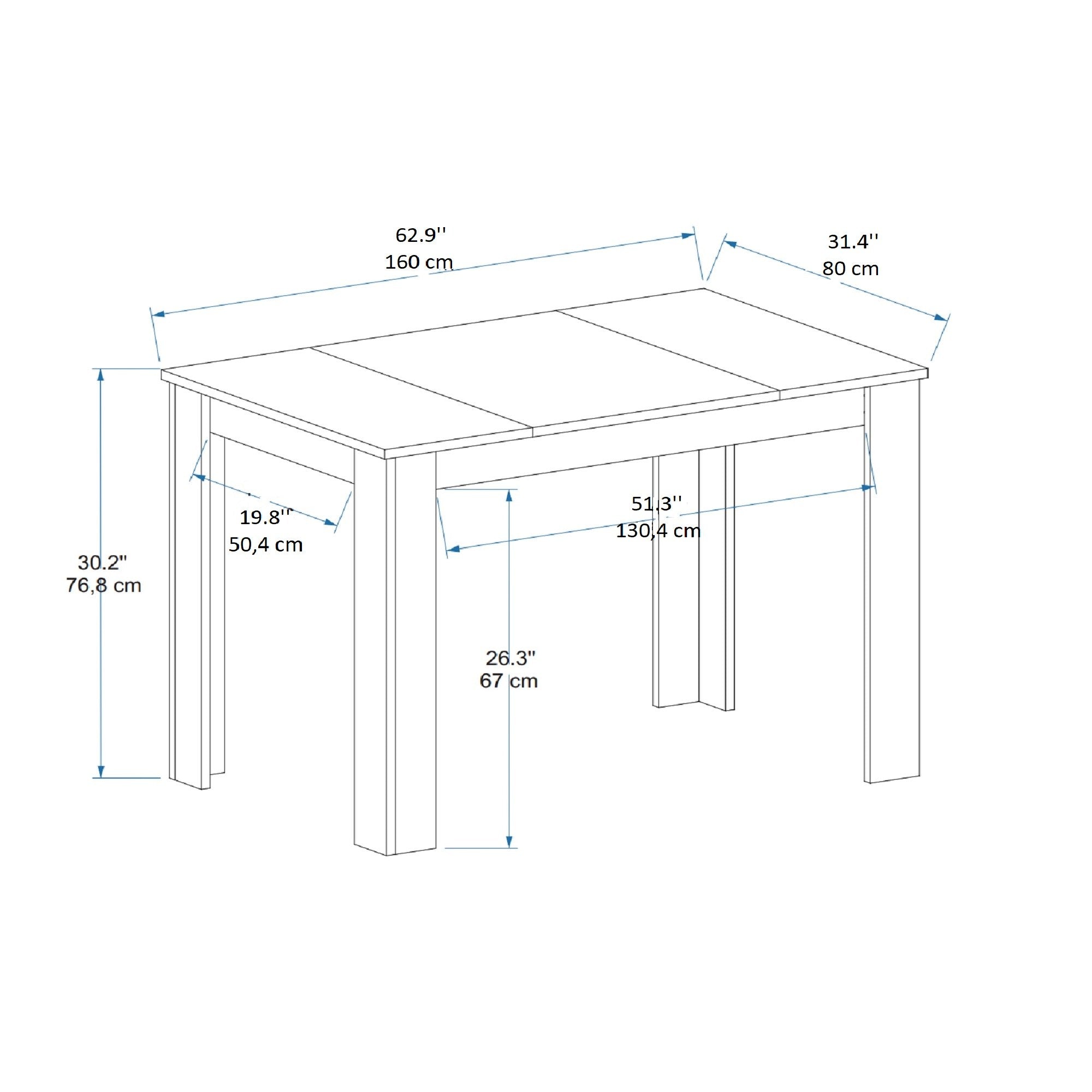 76. 8 cm-es magasságával, 160 cm-es szélességével és 80 cm-es mélységével étkezőasztalunk bőséges helyet kínál családja és barátai számára, hogy összegyűlhessenek körülötte. Legyen szó egy hangulatos vacsoráról két személyre vagy egy ünnepi összejövetelről, ez az asztal tökéletes helyszínt biztosít az emlékezetes pillanatokhoz és beszélgetésekhez.