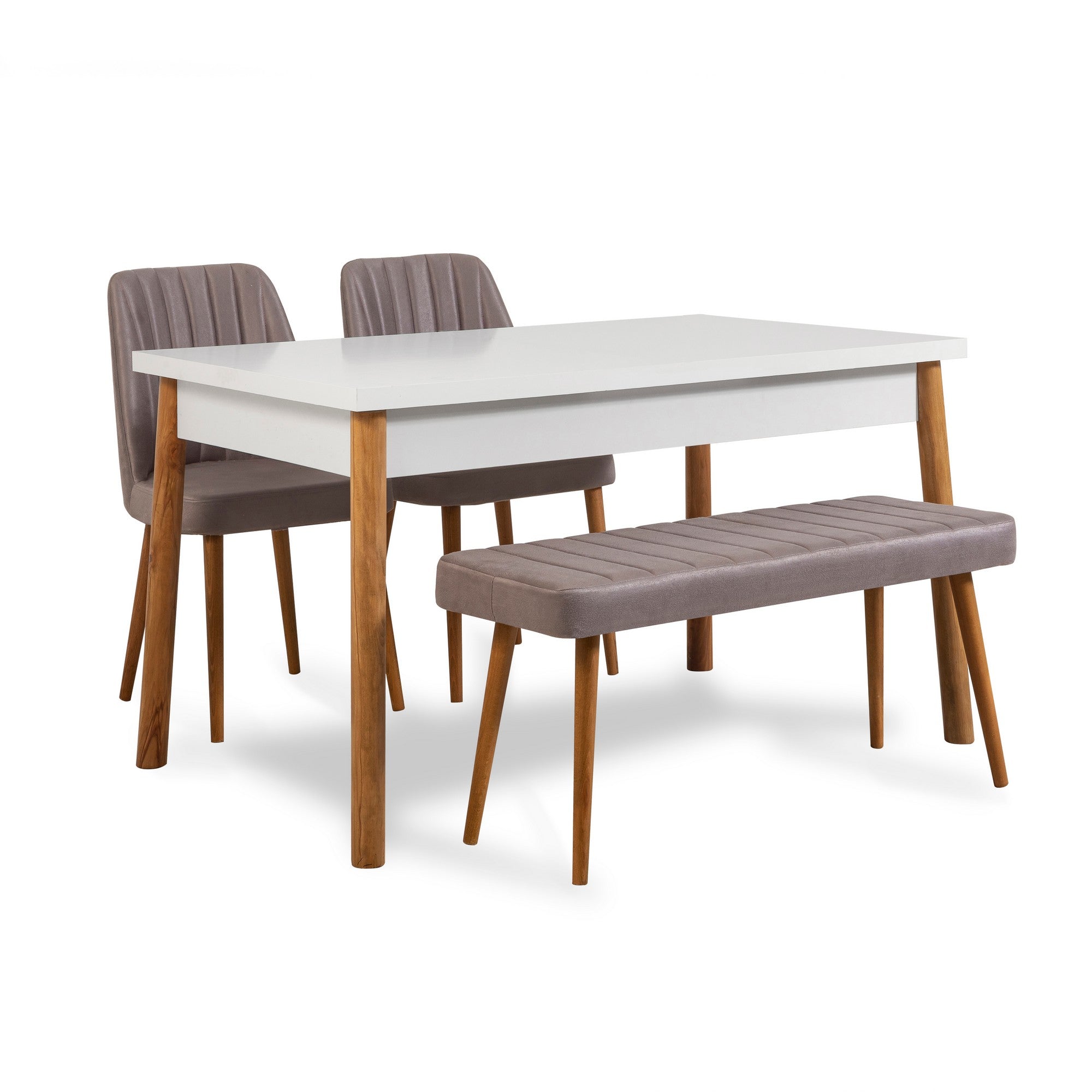 A székek és a pad, erős fémkerettel és luxus bársonyhab -szövetkel, kényelmet és stílust is kínálnak. A székek ergonómiai kialakítása és a pad plüss ülései biztosítják a hangulatos étkezési élményt az Ön és szeretteinek.