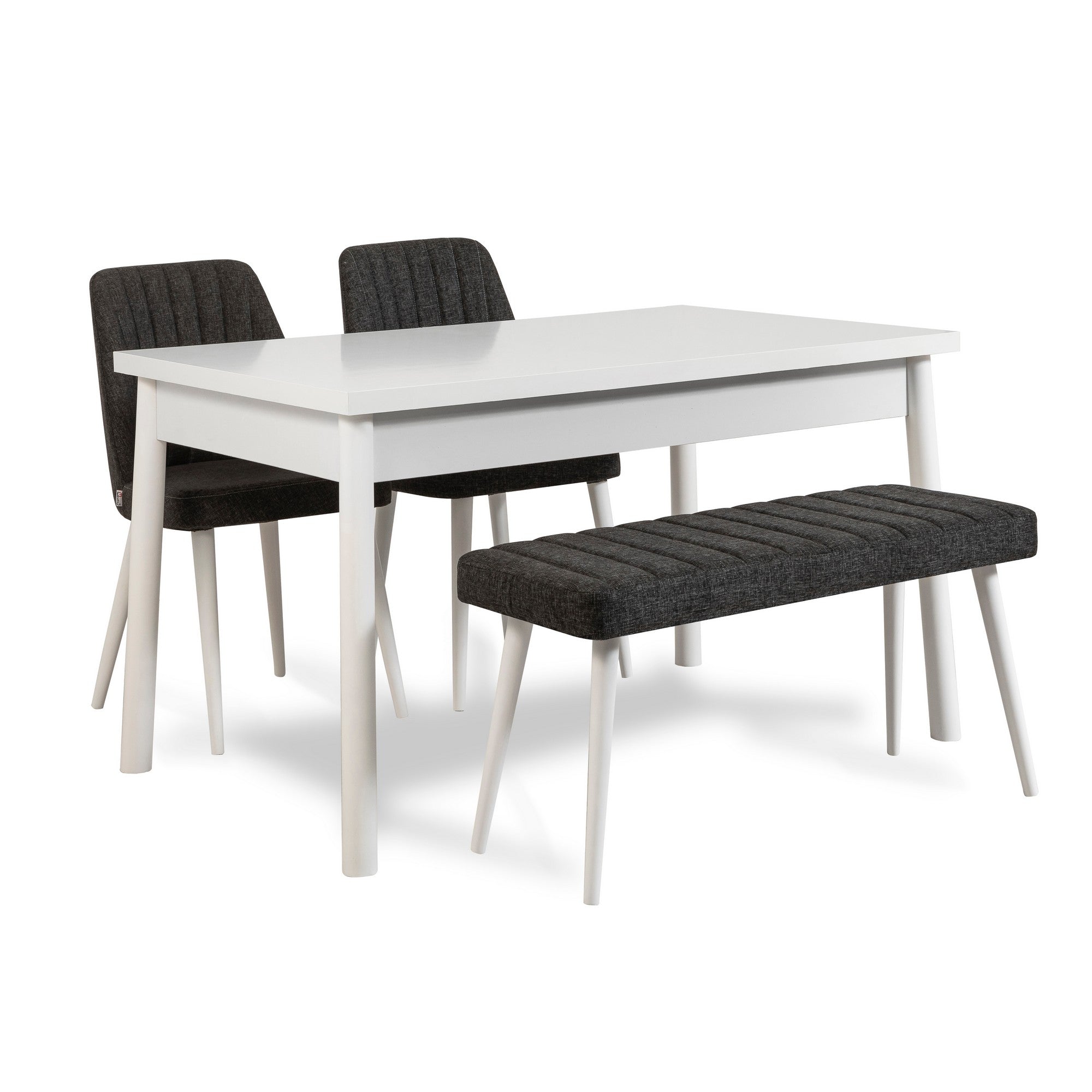 A fehér és antracit színek kombinációja elegáns és modern megjelenést eredményez, amely könnyedén illeszkedik bármilyen belsőépítészeti dekorációhoz. Akár kortárs, akár hagyományos stílusa van, ez a garnitúra egy csipetnyi kifinomultságot kölcsönöz étkezőjének.