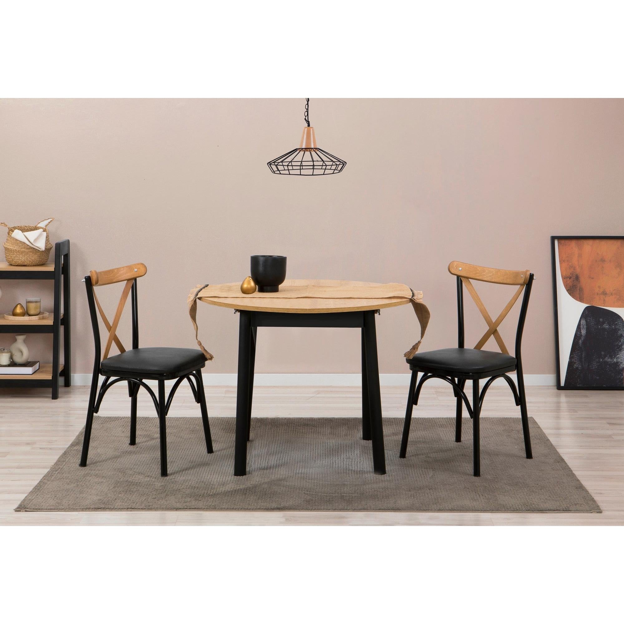 A készlet két székből áll, amelyek illeszkednek a dizájnhoz, forgácslap felső lappal és bükkfa lábakkal rendelkeznek. A székek ergonomikusan vannak tervezve a maximális kényelem érdekében, lehetővé téve, hogy hosszú étkezéseket élvezzen kényelmesen. A székek letisztult és minimalista dizájnja tökéletesen kiegészíti az asztalt, egységes megjelenést teremtve az étkezőjében.