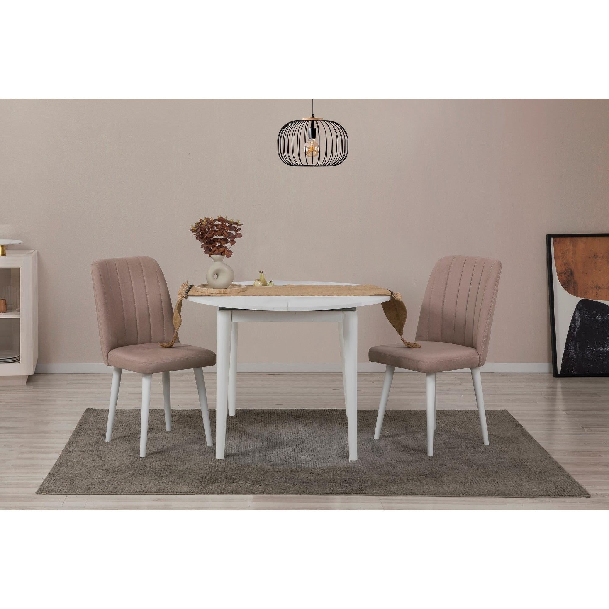 Alakítsa át étkezőjét egy stílusos és funkcionális térré az Extendable Dining Table & Chairs Set segítségével. Ez a 3 darabos szett tökéletes azok számára, akik szeretnek vendégül látni, vagy egyszerűen csak élvezni a családi étkezéseket együtt. A letisztult dizájn és a modern fehér és kő színpaletta feldobja bármilyen étkező megjelenését, barátságos légkört teremtve mindazok számára, akik köré gyűlnek.