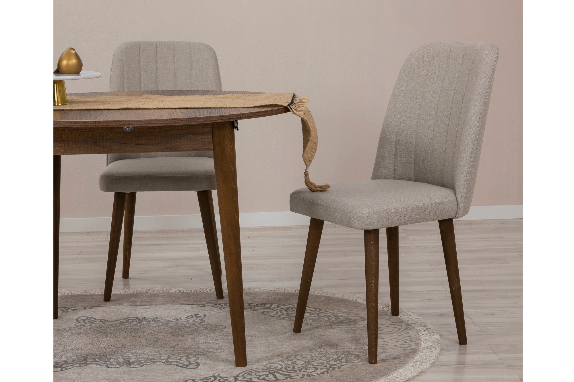 A szett két széket tartalmaz, amelyek fából készült lábai stílust és kényelmet egyaránt biztosítanak. A székek tökéletes kiegészítői az asztalnak, így egységes megjelenést kölcsönöznek étkezőjének.