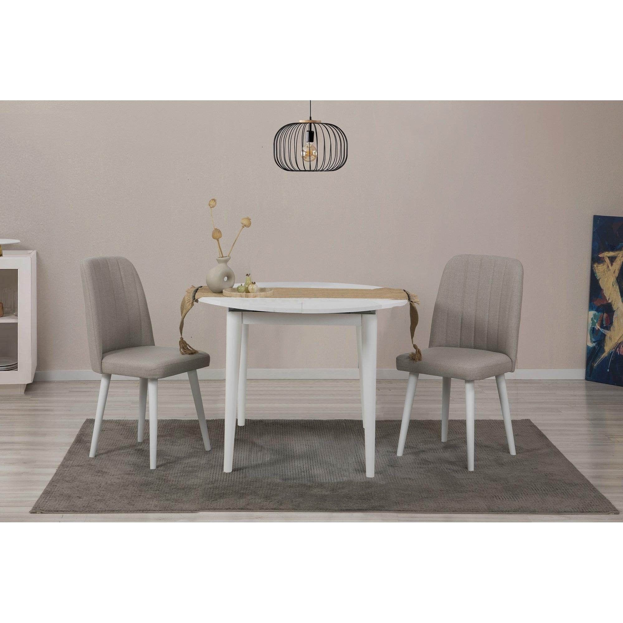 Étkezőgarnitúra(Kihúzható asztal, szék) (3 db) Vina 1005 3 v2 - Fehér, Krém