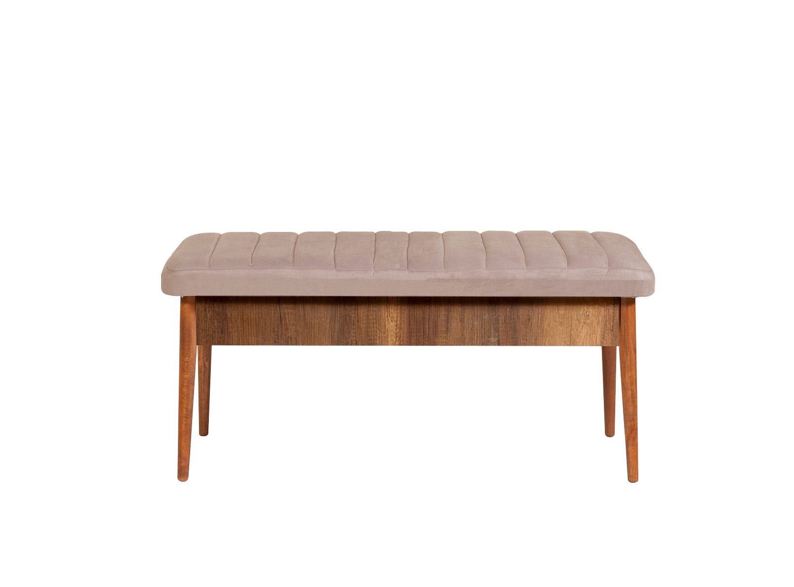 Az étkezőasztal letisztult és minimalista dizájnnal rendelkezik, 130 cm szélességgel, amely 165 cm-re bővíthető nagyobb összejövetelekhez. A székek és a pad kényelmes ülést biztosítanak, a székek ülésmagassága 45 cm, míg a padé 51 cm. A tárolóegység kényelmes tárolóhelyet kínál az étkezéshez szükséges dolgoknak.