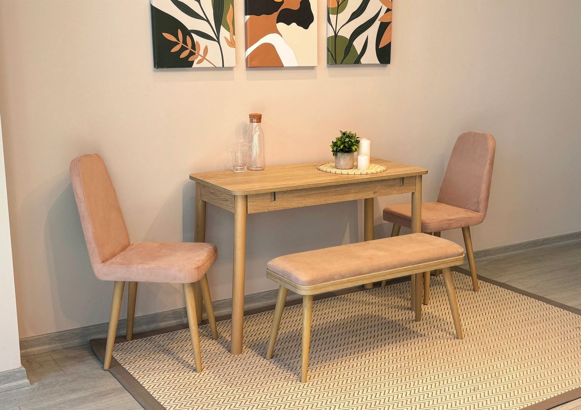 A kihúzható étkezőasztal lehetővé teszi, hogy könnyedén több vendéget fogadjon, így tökéletes választás vacsora partik vagy családi összejövetelek lebonyolításához. A székek és a pad kényelmes ülőhelyet biztosítanak, így mindenki együtt élvezheti az étkezést a kényelemben.