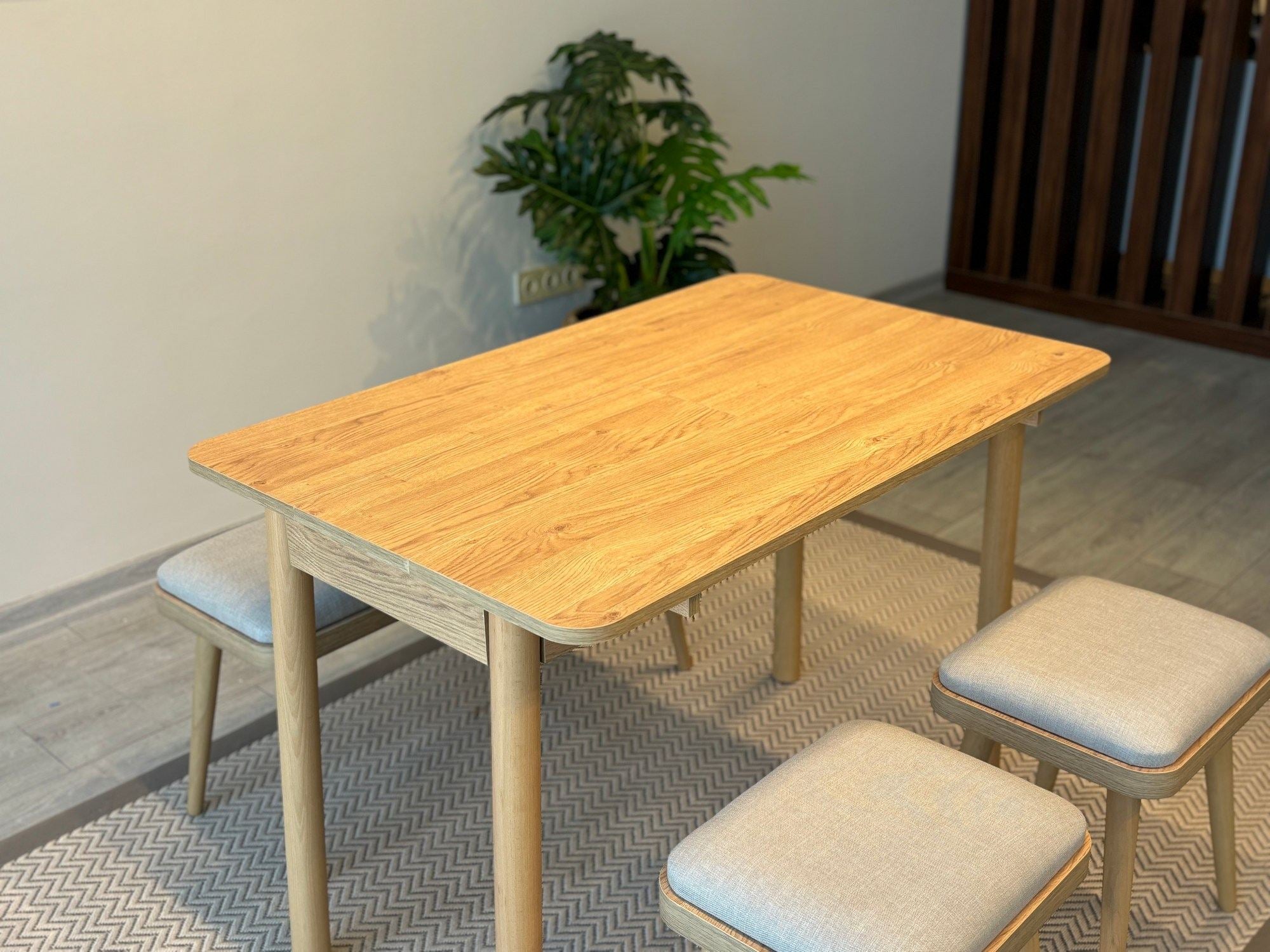 Alakítsa át étkezőjét az elegancia és a kifinomultság terévé a kihúzható étkezőasztal és székek szettünkkel. Ez a 4 darabos készlet tökéletes családi összejövetelek, vacsorapartik megrendezésére, vagy egyszerűen csak a szeretteivel való étkezéshez.
