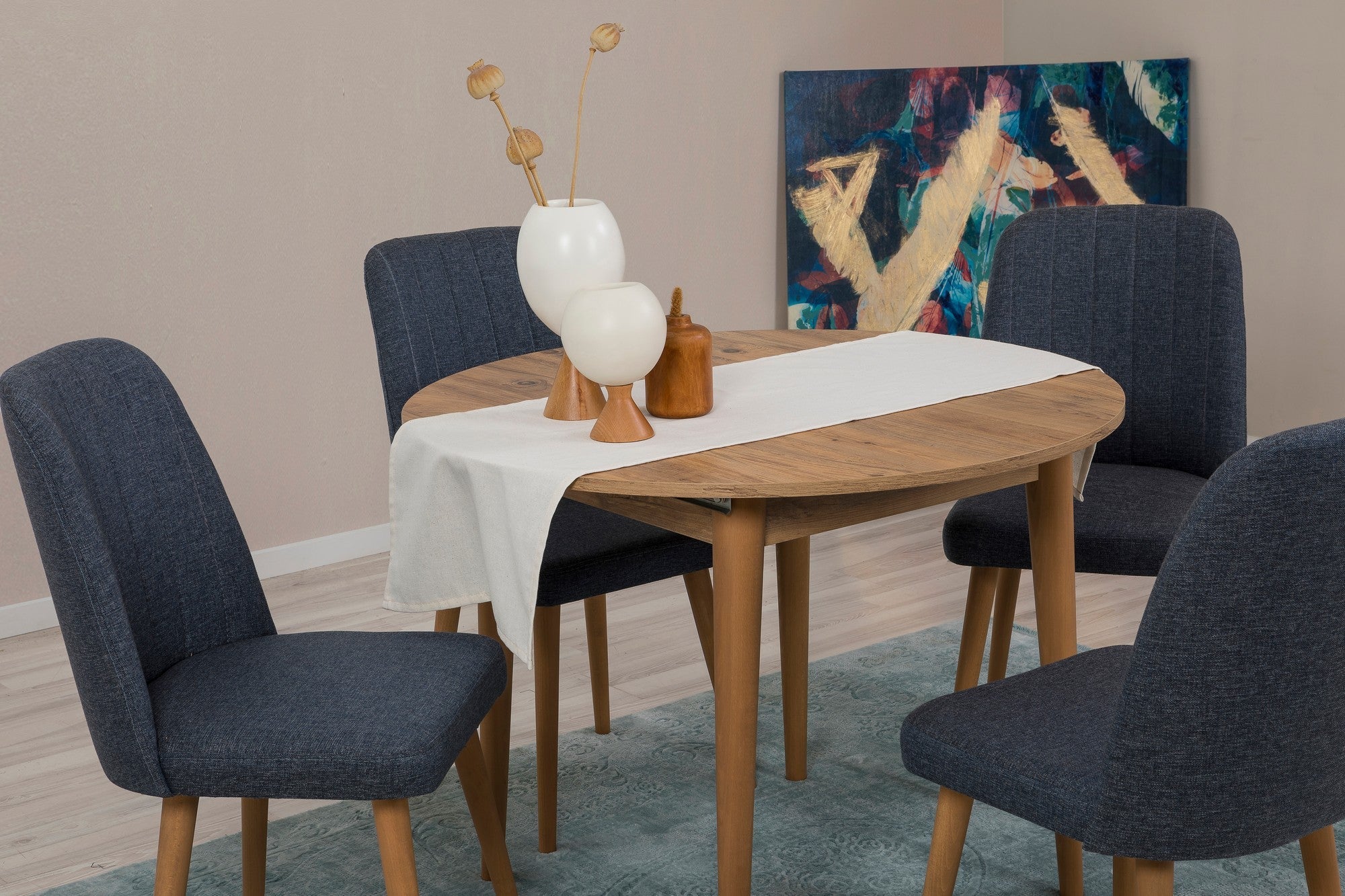 Változtassa meg étkezőterét ezzel a gyönyörű, kihúzható étkezőasztal és székek készlettel!