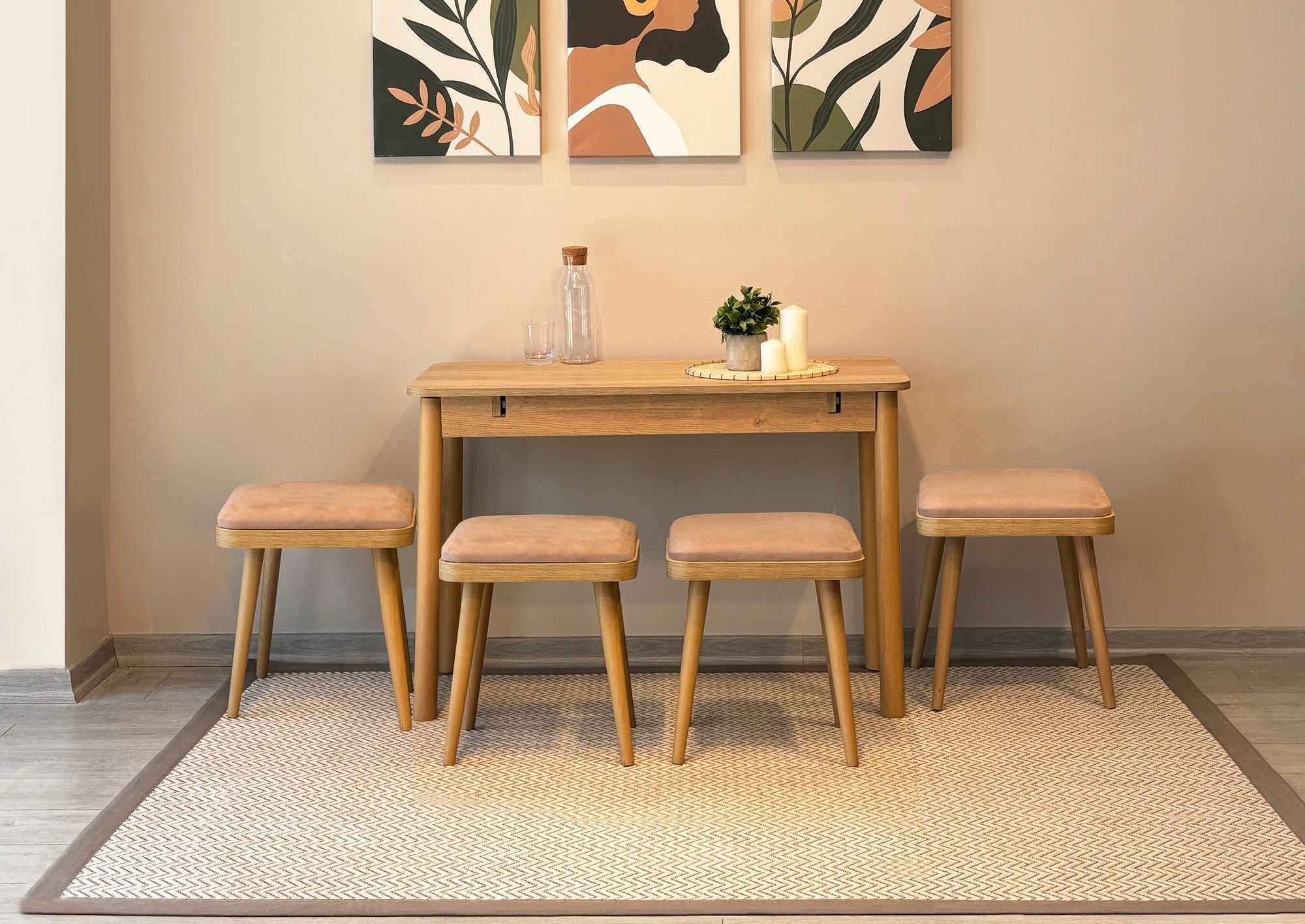 Étkezőgarnitúra(Kihúzható asztal, szék) (5 db) Vina Mini 05 0900 - Tölgy, Stone