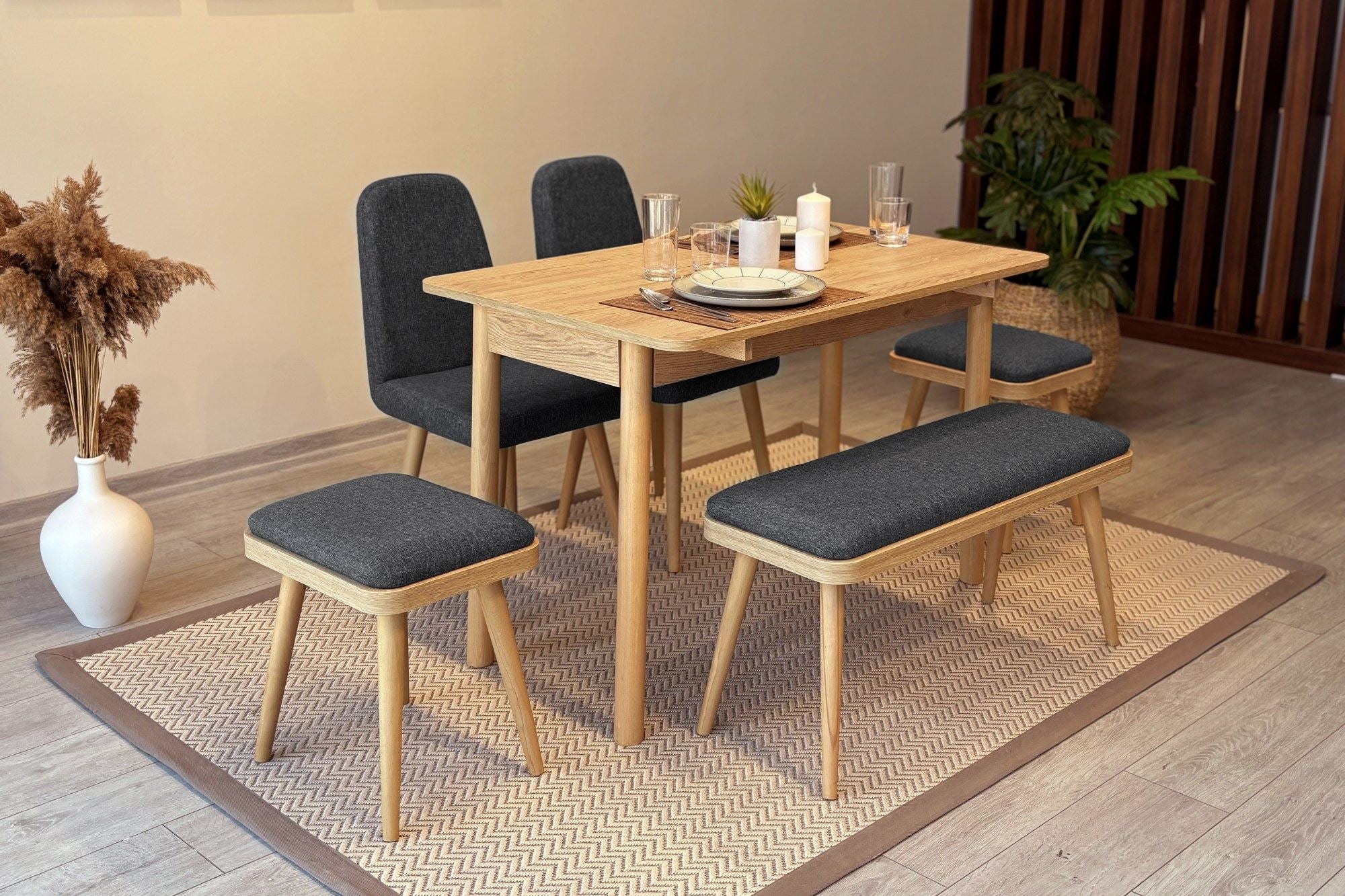 Étkezőgarnitúra(Kihúzható asztal, szék) (6 db) Vina Mini 03 1053 - Tölgy, Antracit