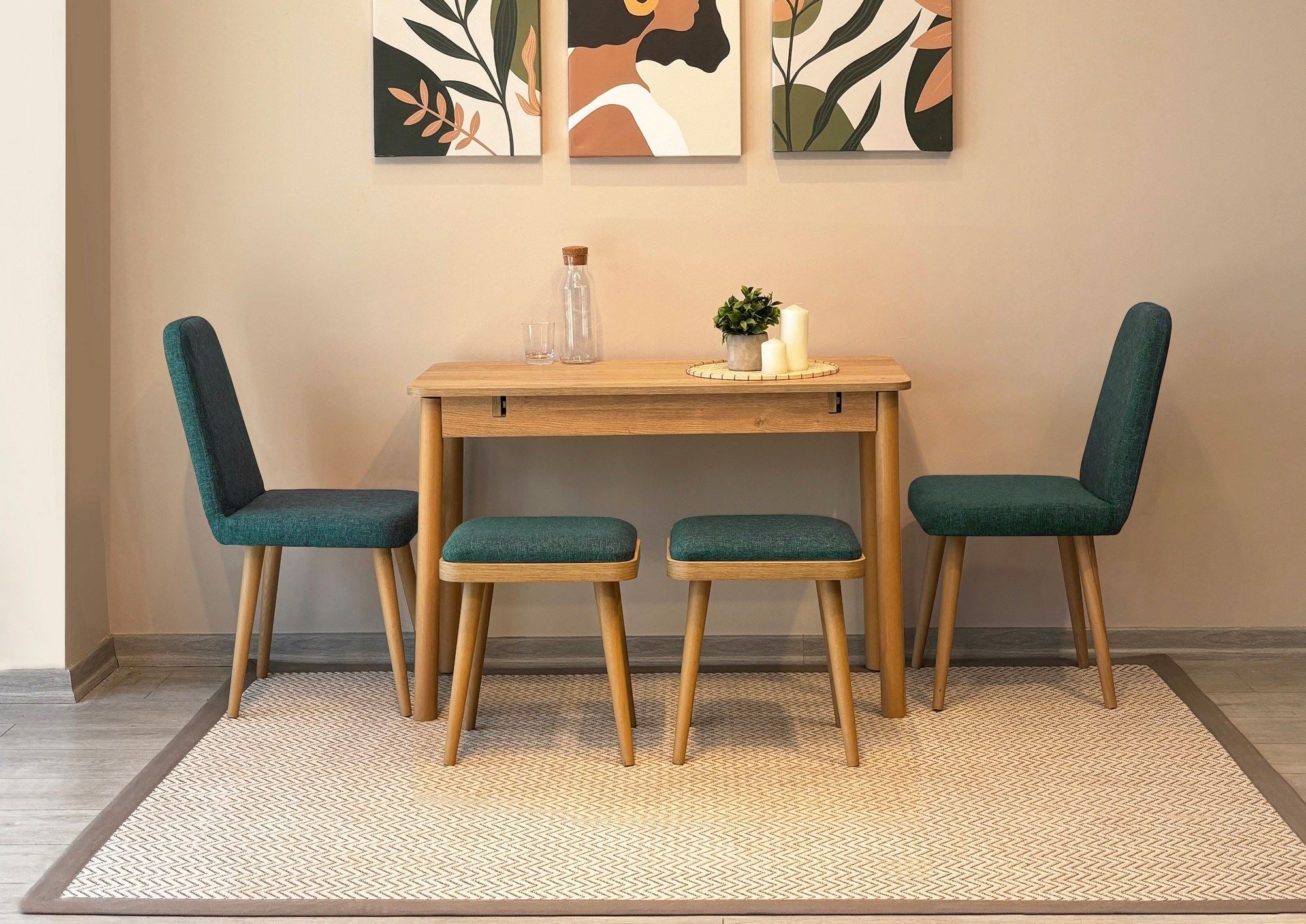 Étkezőgarnitúra(Kihúzható asztal, szék) (6 db) Vina Mini 03 1070 - Tölgy, Zöld