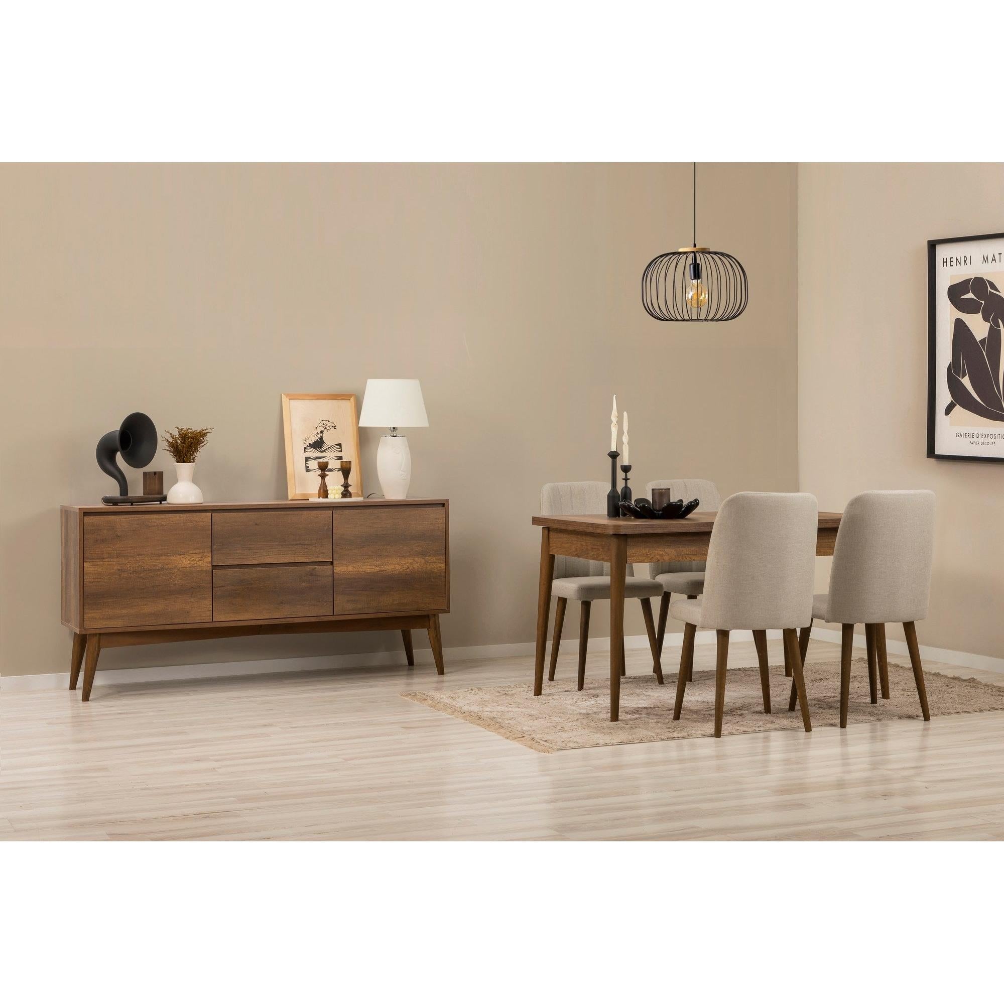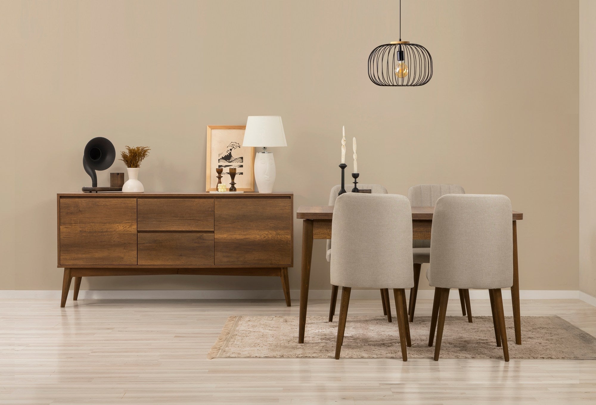 Elegáns dizájn: A dió és krém színek kombinációja kifinomultságot kölcsönöz az étkezőnek, meleg és barátságos légkört teremtve a család és a vendégek számára.