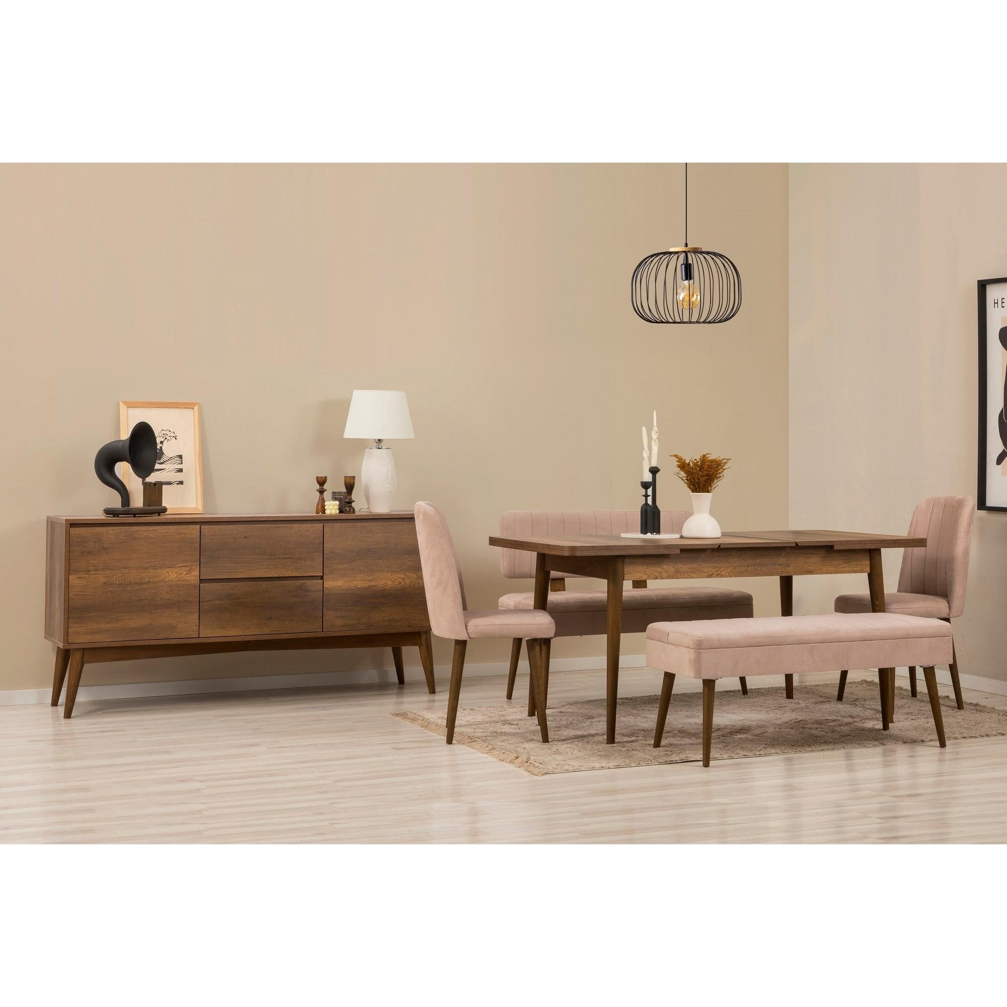 Alakítsa át étkezőjét egy stílusos és hívogató térséggé az Extendable Dining Table, Chairs & Console Set készletünkkel. Ez a 6 darabos szett a melegség és elegancia jegyében készült, így minden étkezés különleges alkalommá válik.