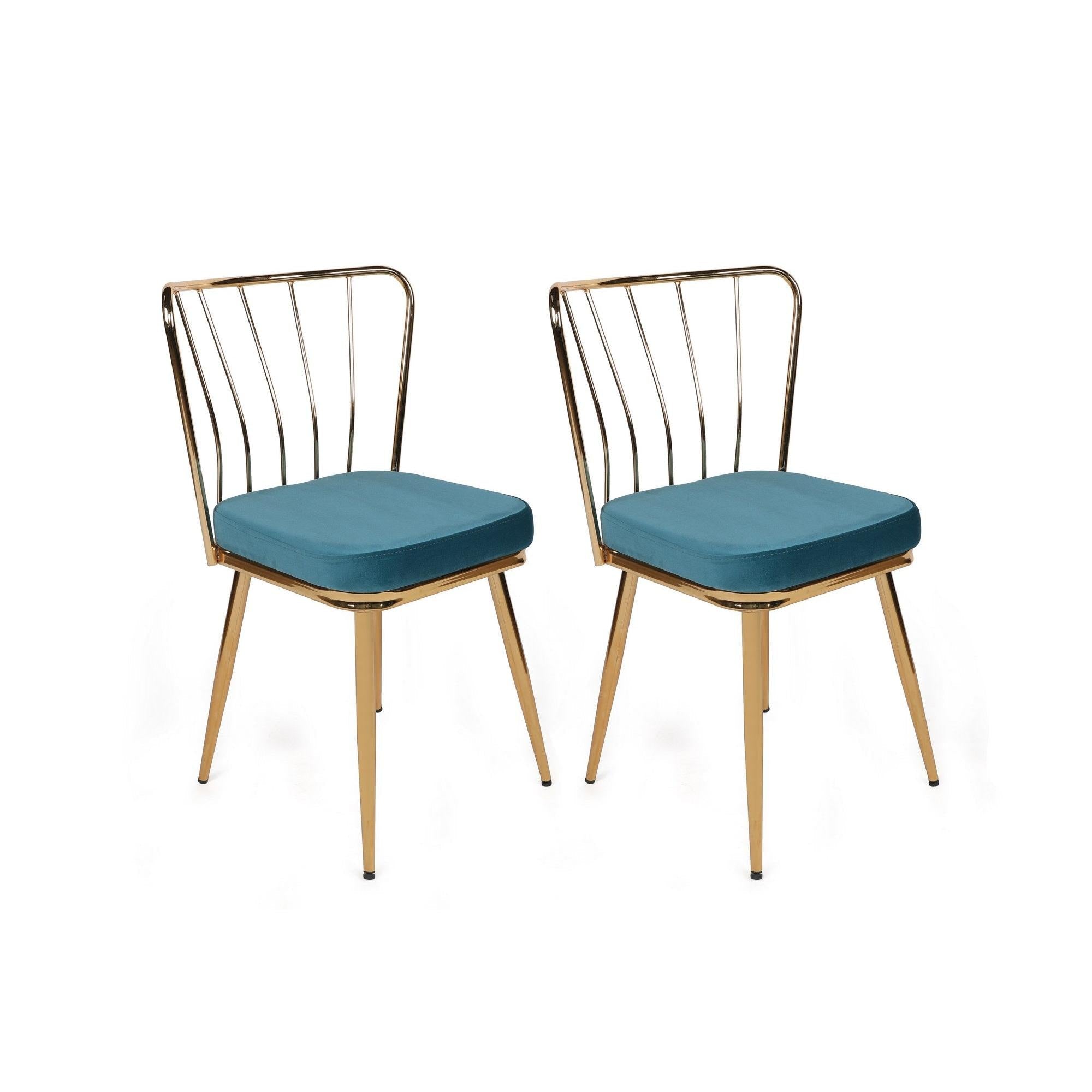 A székgarnitúra a kék és az arany lenyűgöző kombinációja, amely vizuálisan feltűnő és elegáns megjelenést eredményez. A kontrasztos színek egy csipetnyi csillogást kölcsönöznek minden térnek, így tökéletes kiegészítője otthonának vagy irodájának.