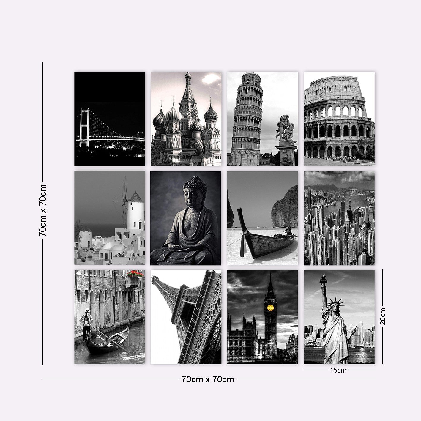 Alakítsa át életterét ezzel a lenyűgöző, 12 darabos, dekoratív mdf festményből álló készlettel. Minden egyes darabot gondosan, 100% mdf-ből készítenek, így biztosítva a tartósságot és a hosszú élettartamot. A 3 mm-es vastagság eleganciát és kifinomultságot kölcsönöz ezeknek a gyönyörű műalkotásoknak.
