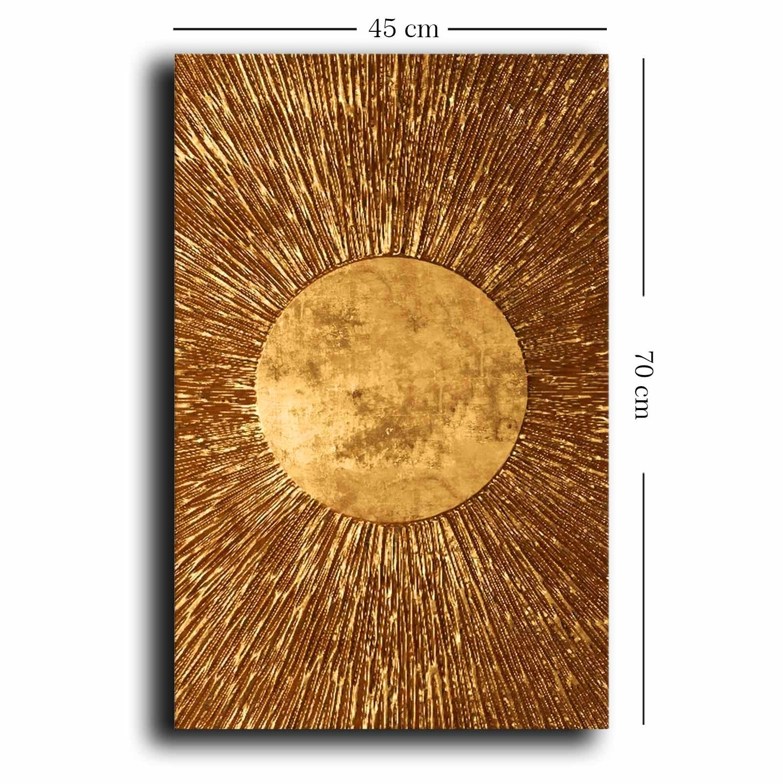Ennek a vászonfestménynek az arany árnyalatai offulenciát és nagyszerűséget okoznak, és azonnal átalakítják a teret egy luxus menedékké. A bonyolult részletek és a csillogó ékezetek gazdagságot és eleganciát teremtenek, ezáltal tökéletesen kiegészítik a modern vagy hagyományos dekorációt.