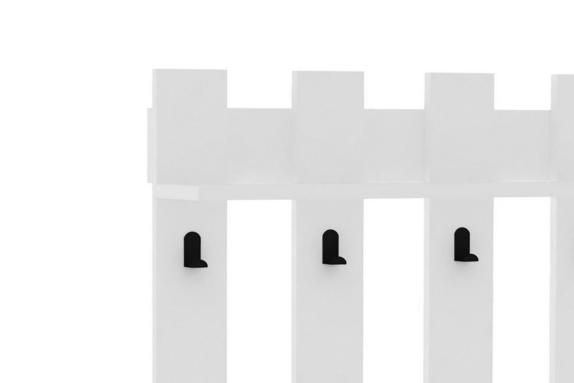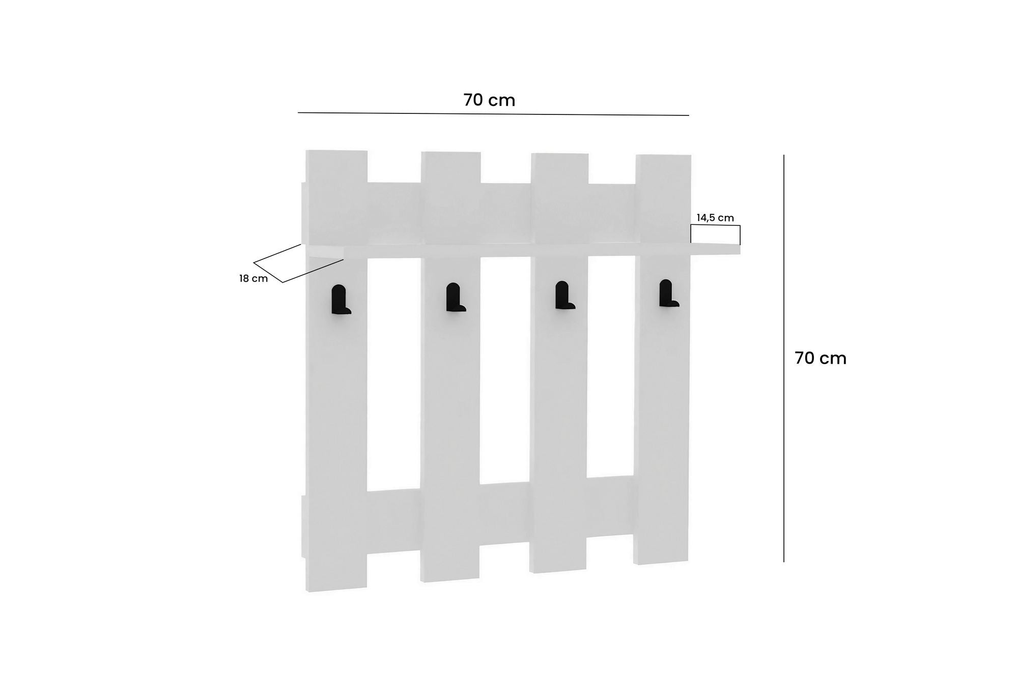 A 100% melaminbevonatú forgácslapból készült, ez a fali akasztó tartósan készült. A 18 mm-es vastagság biztosítja a strapabíróságát és tartósságát, így évekig megbízható tárolási megoldást nyújt Önnek. Fehér színe a tisztaság és az elegancia jegyeit kölcsönzi, könnyedén illeszkedik bármilyen színösszeállításhoz.