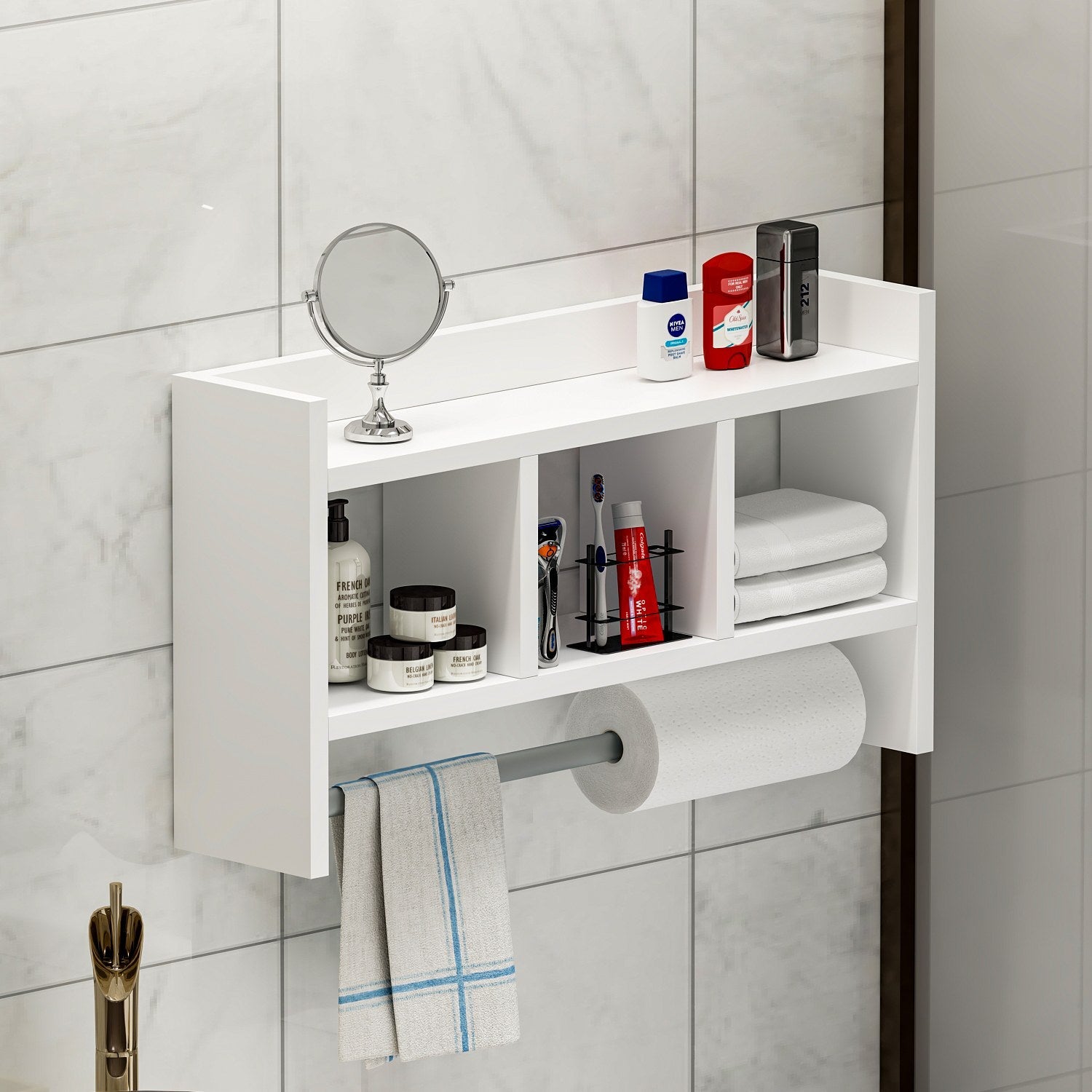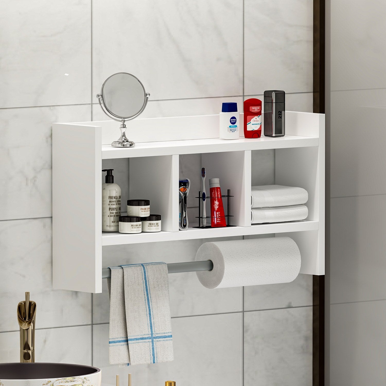 Fokozza falai eleganciáját gyönyöruen megmunkált fali polcunkkal. Elegáns és modern kialakítása könnyedén illeszkedik bármilyen belsoépítészeti stílushoz, és egy csipetnyi kifinomultságot kölcsönöz otthonának. Akár kedvenc könyveit szeretné megjeleníteni, akár dekorációs tárgyakat szeretne bemutatni, vagy a legszükségesebb dolgokat rendszerezni, ez a polc tökéletes megoldás.