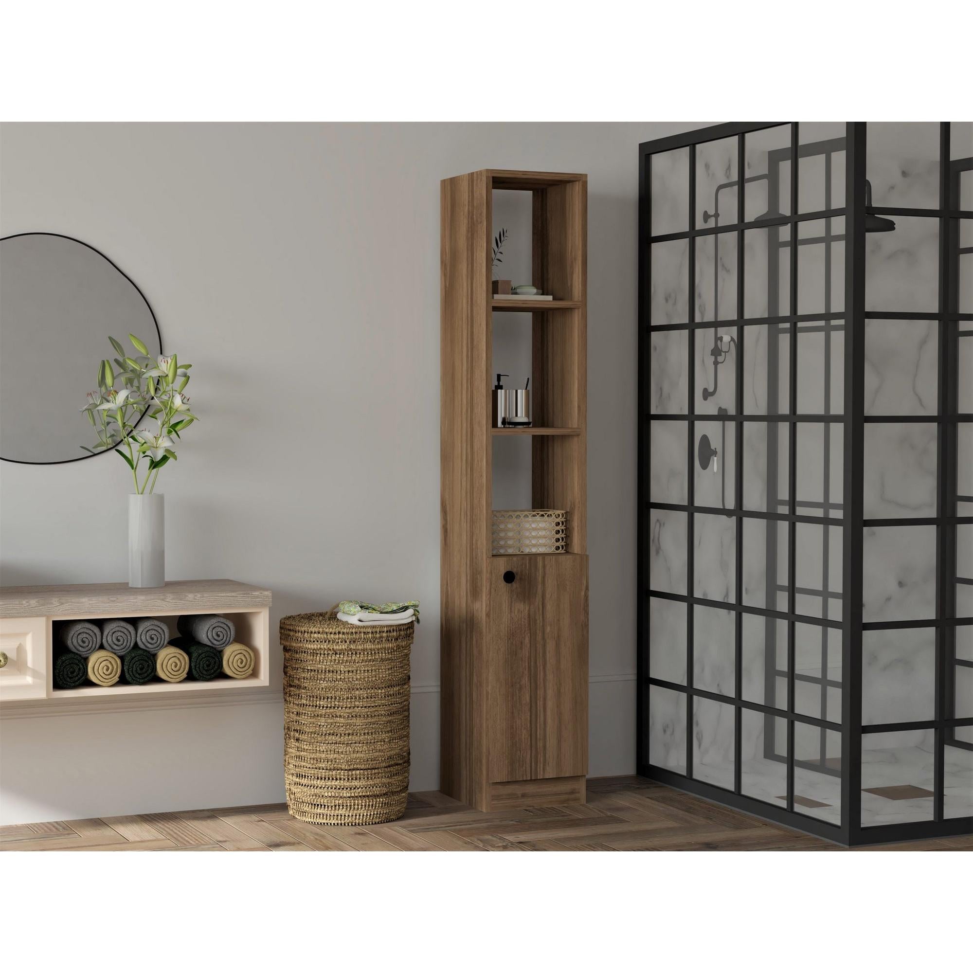 A számos polccal ez a szekrény bőséges tárolóhelyet biztosít az összes fürdőszobai alapvető dolognak. A törölközőktől a piperecikkekig mindent szépen elrendezhet, így fürdőszobája rendezett és rendezett marad.