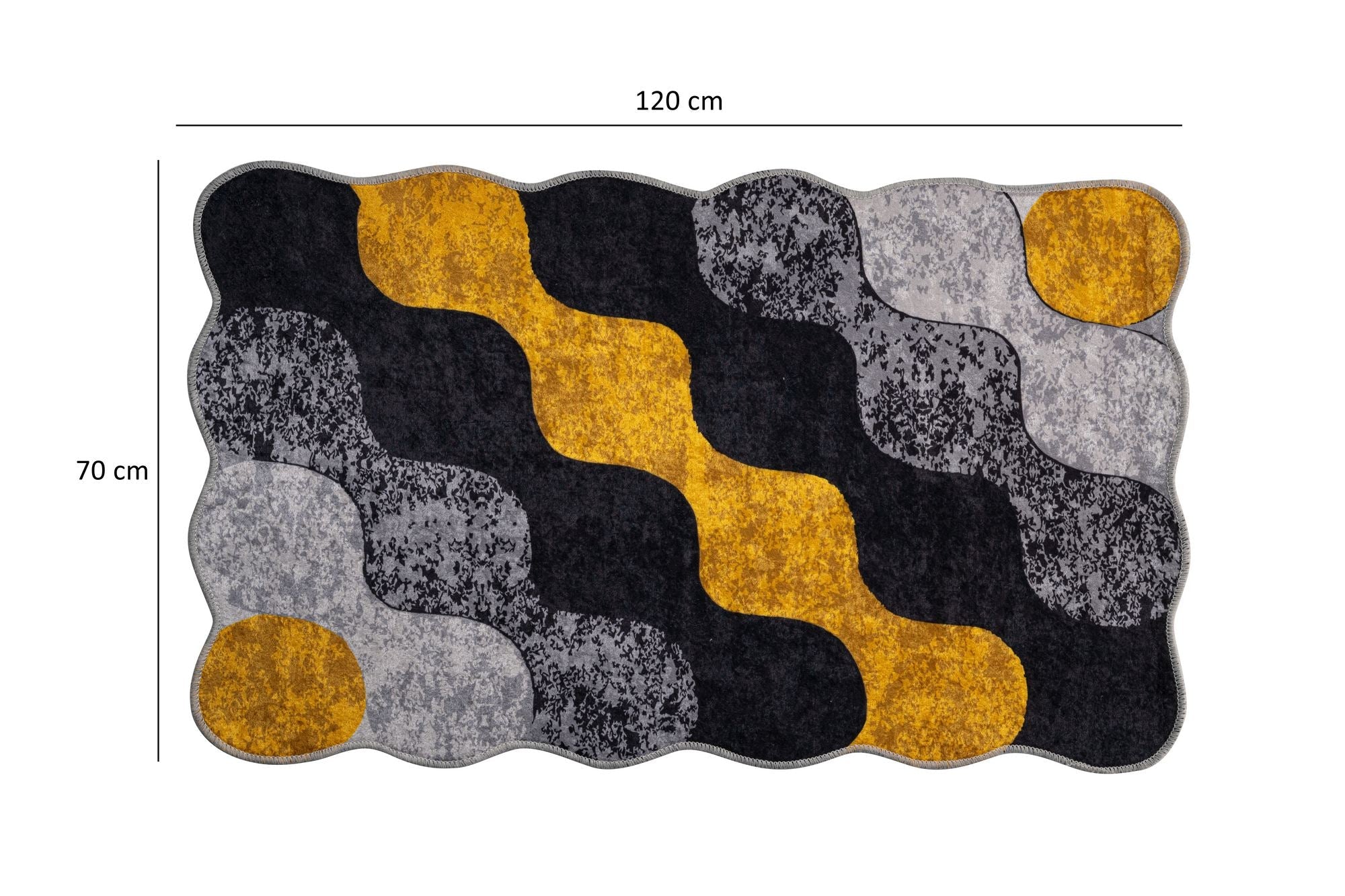 Fürdőszőnyegünk a sárga, antracit és szürke színek lenyűgöző kombinációjával rendelkezik, amely eleganciát és stílust kölcsönöz fürdőszobája dekorációjának. Teremtsen meleg és hívogató légkört ezzel a gyönyörű fürdőszőnyeggel.