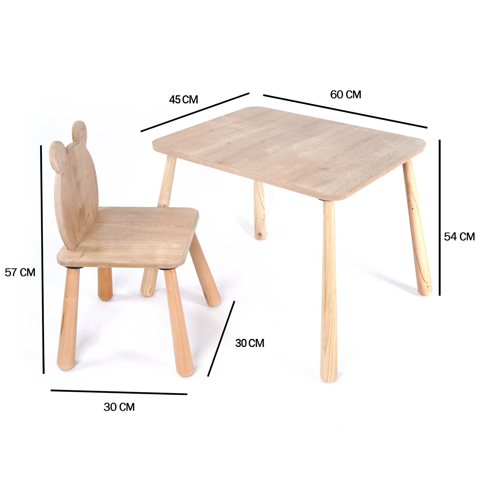 Alakítsa át gyermeke játékidejét ezzel a gyönyörűen megtervezett gyerekasztal szettel. A masszív MDF test és a tömör fenyőfa lábak nemcsak tartósak, hanem stílusosak is. A meleg tölgy szín eleganciát ad bármelyik játszószobának vagy hálószobának, így tökéletes kiegészítője gyermeke terének.