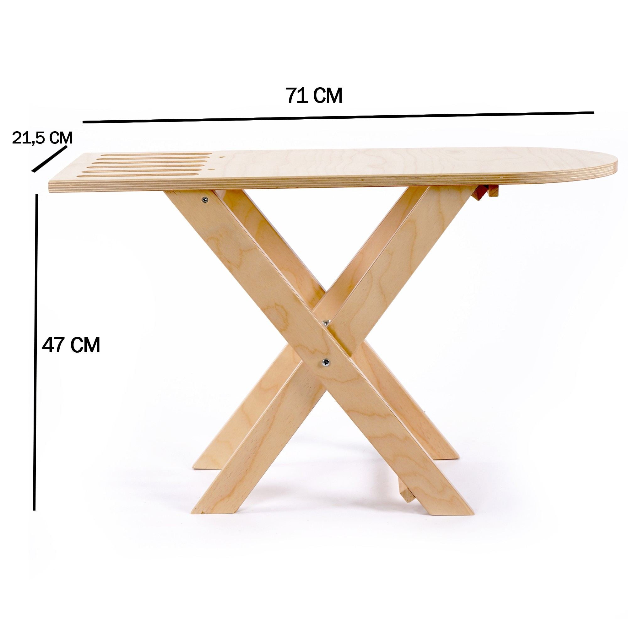 Bemutatjuk a végső játékot a kicsik képzeletbeli játékához - a Vasaló és Vasalódeszka szettet! Figyeld, ahogy gyermeked mini háztartásbeli válik, miközben értékes életkészségeket tanul a játék során. Ez a gyönyörűen megmunkált szett 100%-os rétegelt lemezből készült, biztosítva a tartósságot és a biztonságot órákon át tartó szórakozáshoz.