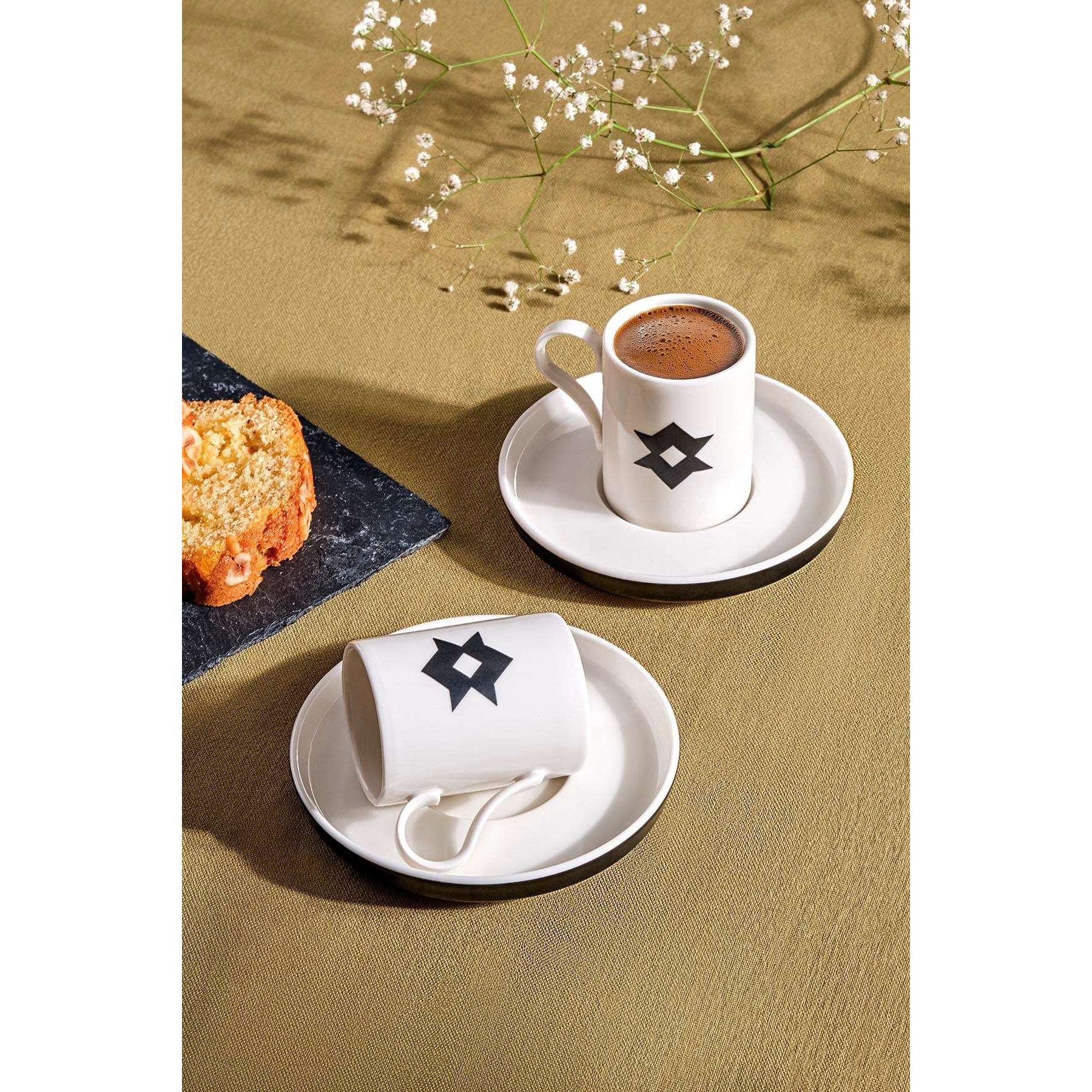 - A készlet 4 darabot tartalmaz: 2 kávéscsészét és 2 alátétet
