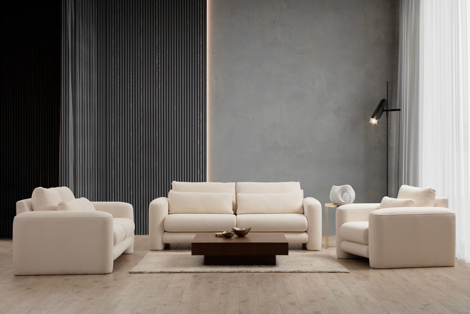 A masszív bükkfa és forgácslap vázzal készült kanapénk tartósságot és hosszú élettartamot sugároz. A 100% poliészterből készült, krémszínű szövet eleganciát kölcsönöz bármely helyiségnek. A kerek műanyag lábak nem csak stabilitást biztosítanak, hanem fokozzák az általános esztétikai vonzerőt is.