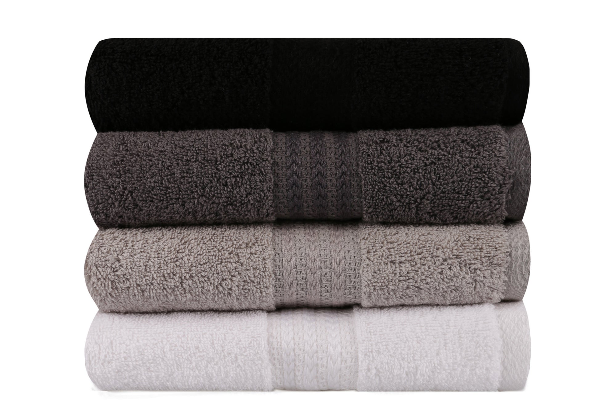 Elegáns kialakításával és kifinomult színeivel a kéztörlő szettünk bármelyik fürdőszobát kifinomulttá varázsolja. A készlet négy törölközőt tartalmaz fehér, szürke, sötétszürke és fekete színben, így stílusának megfelelően kombinálhatja őket. A törölközőket szépen csomagolva egy speciális dobozban szállítjuk, így tökéletes ajándék lehet szeretteinek.