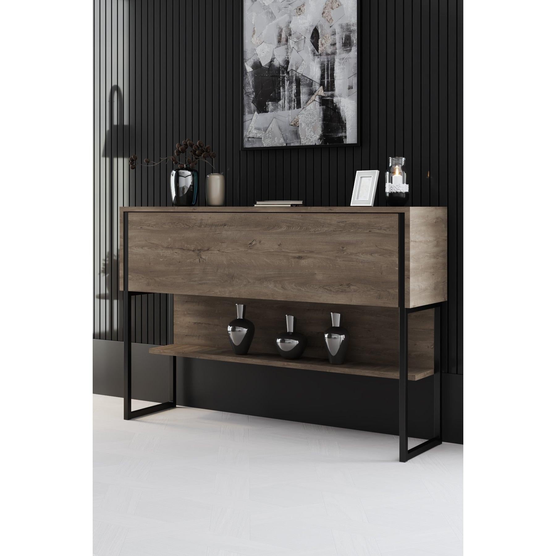 Mondjon búcsút a rendetlenségnek és üdvözölje a szervezettséget komódunkkal. A bőséges tárolóhelynek és a több fióknak köszönhetően könnyedén rendben tarthatja ruháit, kiegészítőit és alapvető dolgait. A fémlábak ipari bájt kölcsönöznek, míg a 18 mm vastagságú, melaminbevonatú forgácslap tartósságot és hosszú élettartamot biztosít.