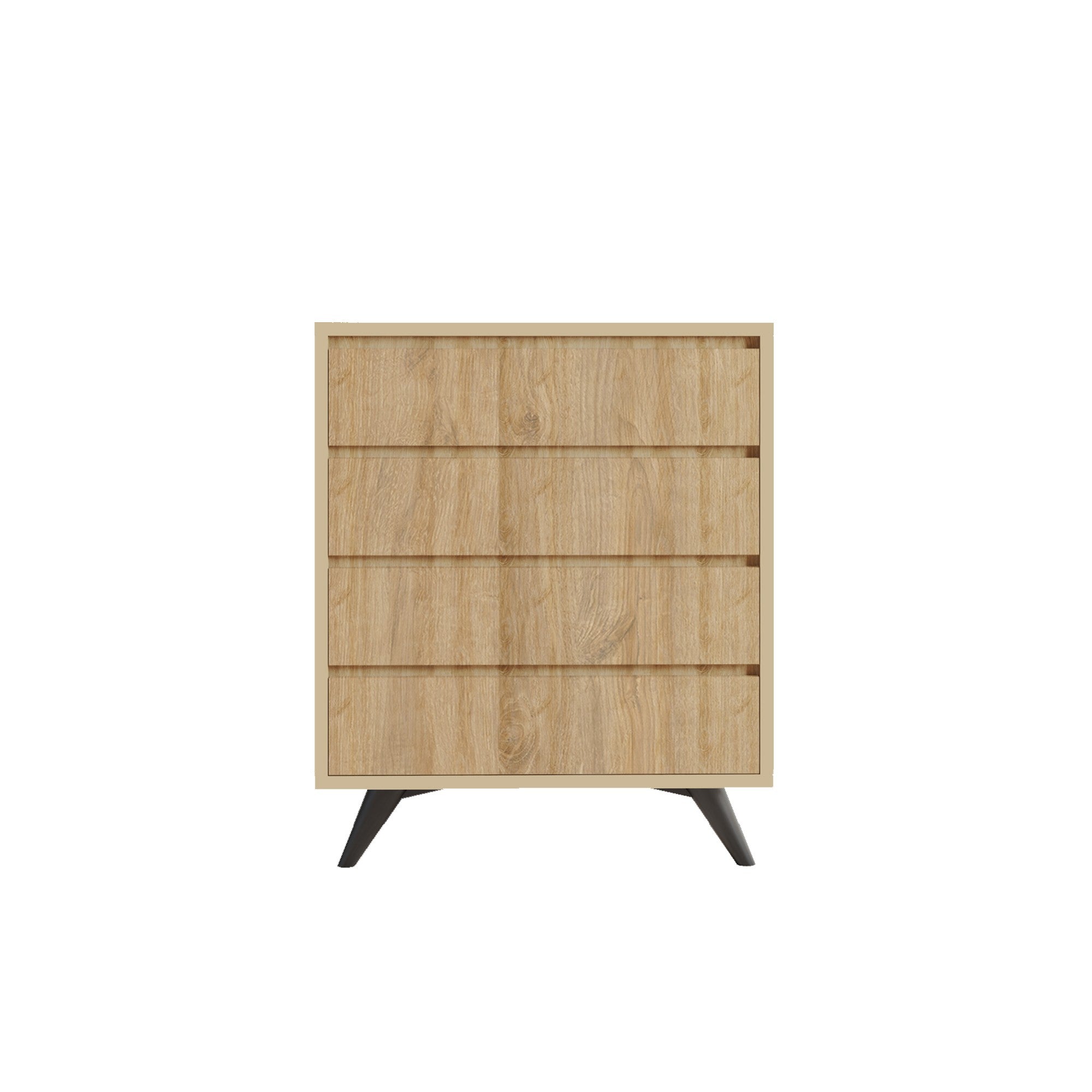 A négy tágas fiókkal és számos polccal ez a komód bőséges tárolóhelyet biztosít minden holmijának. Mondjon búcsút a zsúfolt felületeknek, és köszöntse a rendezett és rendezett hálószobát. A ruháktól a kiegészítőkig mindennek meglesz a kijelölt helye, így könnyebben megtalálod, amire szükséged van.