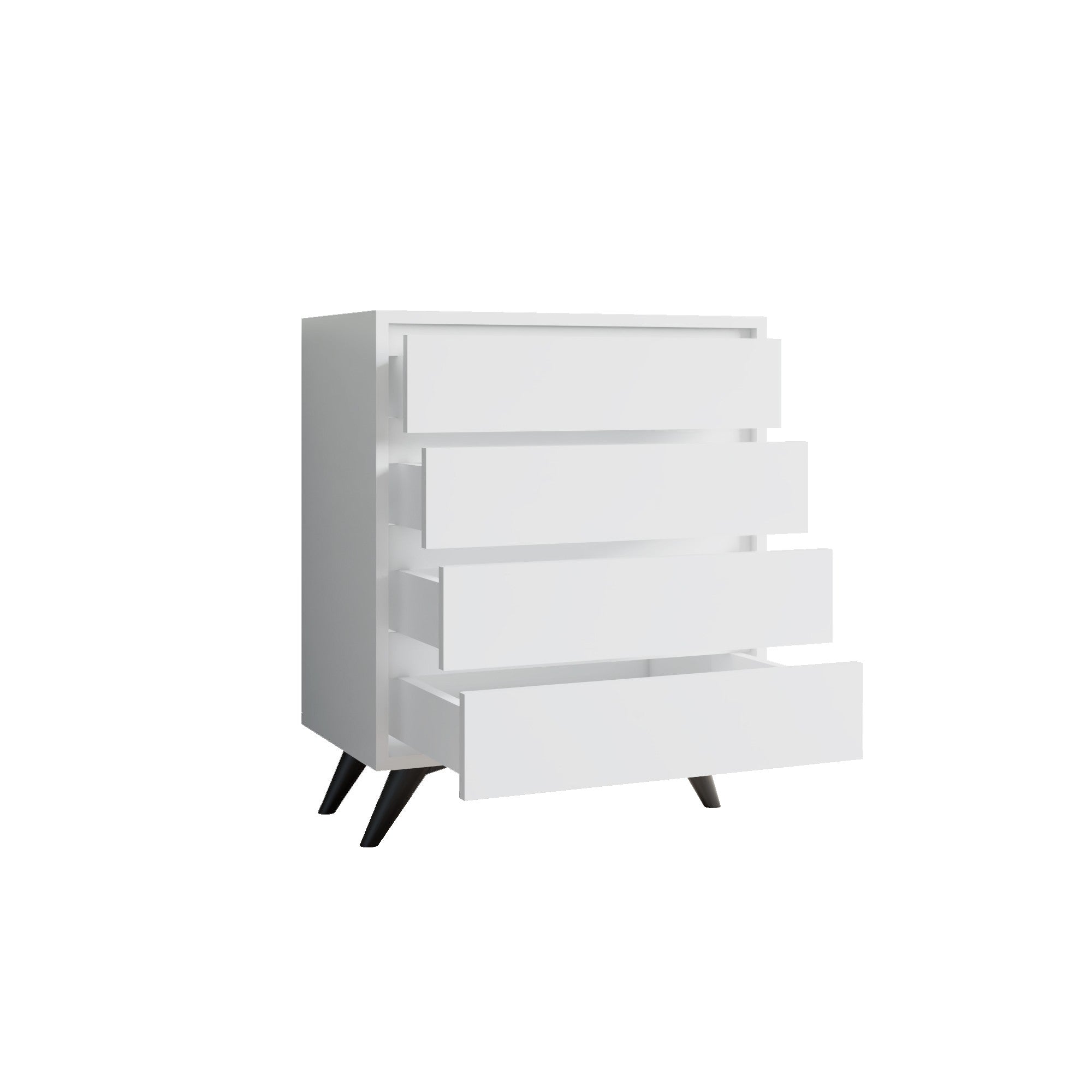 Négy tágas fiókkal és számos polccal komódunk bőséges tárolóhelyet biztosít minden holmijának. Mondjon búcsút a zsúfolt felületeknek, és üdvözölje a rendezett és rendezett hálószobát.