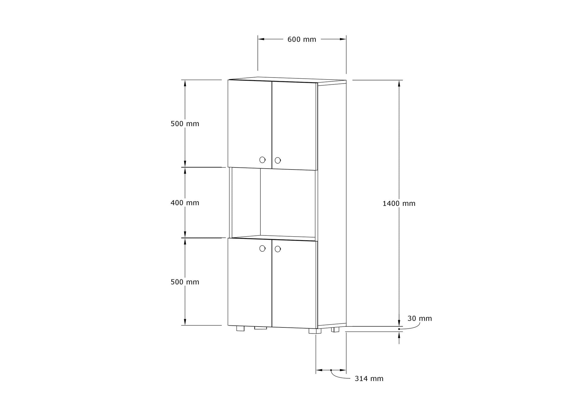 Nagyvonalú méreteivel (60 cm szélesség, 140 cm magasság és 31. 4 cm mélységű, ez a szekrény bőséges helyet biztosít az összes konyhai szükséglet tárolására. A számos polc lehetővé teszi, hogy rendezetten rendszerezze főzőedényeit, edényeit és éléskamrai tárgyait, biztosítva a könnyű hozzáférést, amikor csak szüksége van rájuk.