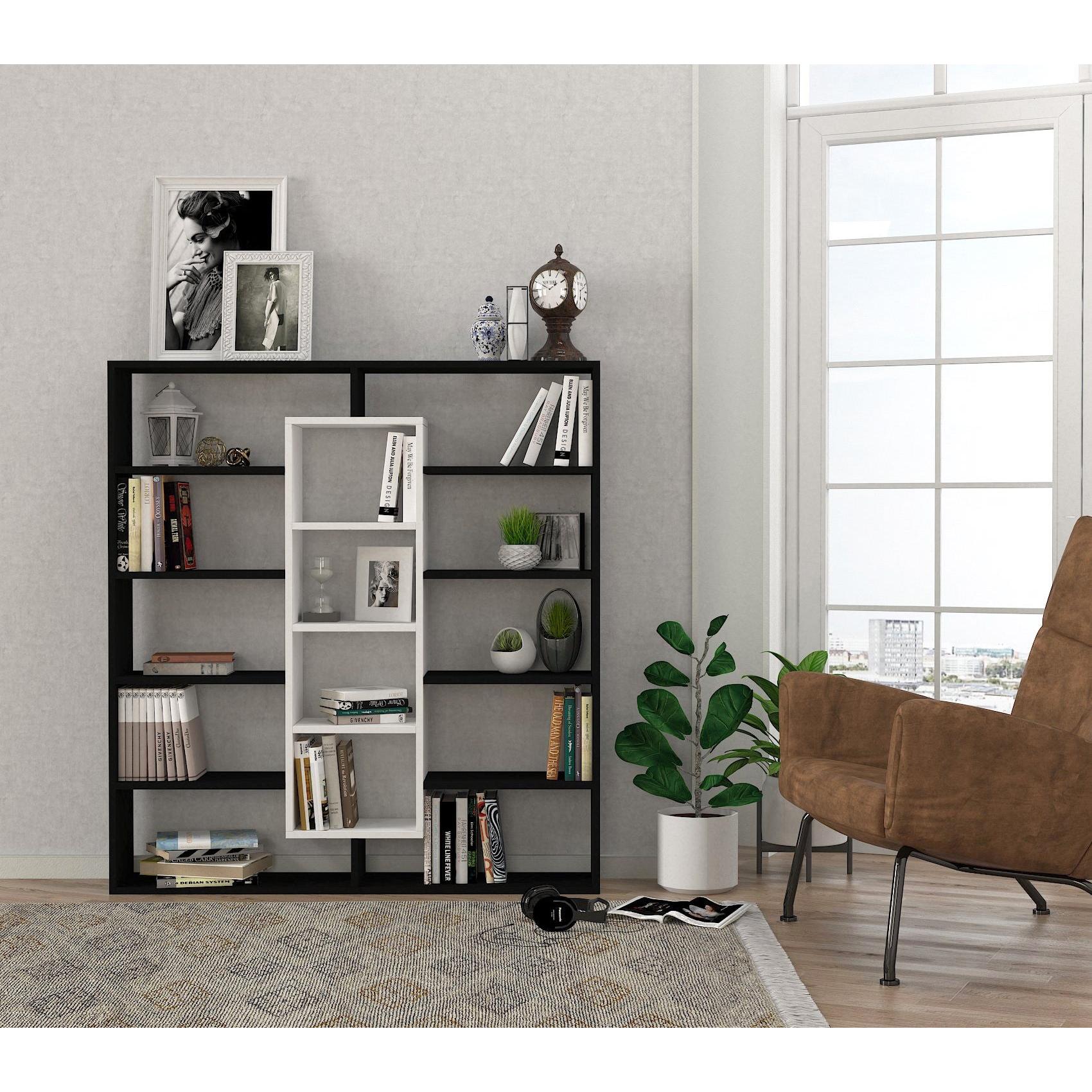 A 100% melaminbevonatú forgácslapból készült könyvespolc nemcsak tartós, hanem kifinomultságot is sugároz. A fekete-fehér színkombináció modern és elegáns hatást kölcsönöz bármilyen dekorációnak, így tökéletes kiegészítője lesz otthonának vagy irodájának.