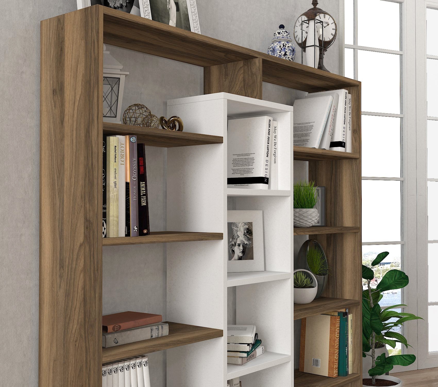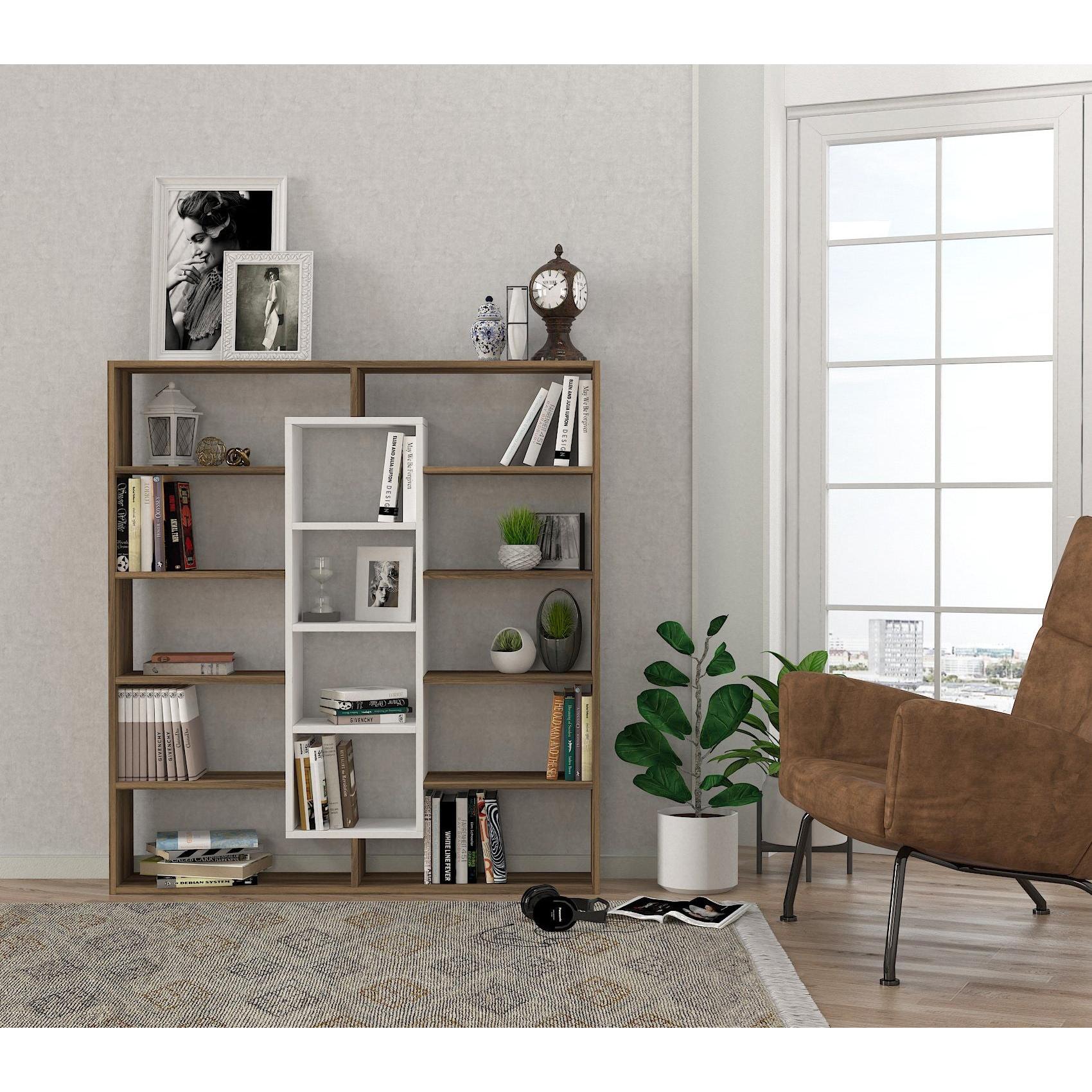 könyvespolc Ample - Walnut, White