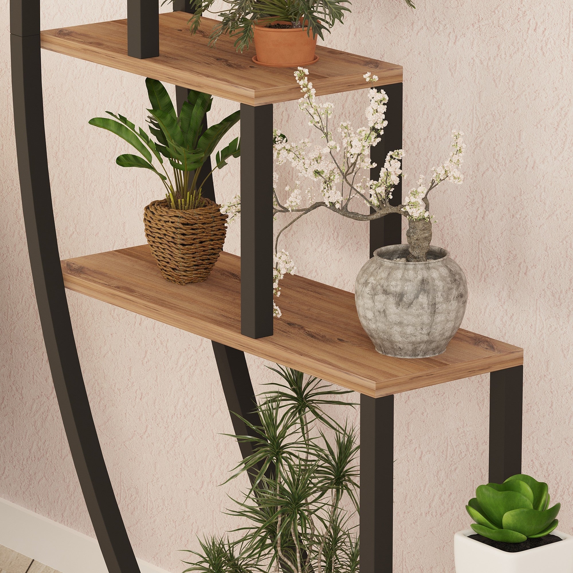A 85 cm-es szélességgel, 180 cm-es magassággal és 35 cm-es mélységgel ez a könyvespolc bőséges helyet kínál az összes könyvnek, dekorációnak és egyebeknek. Az ívelt fém dizájn nem csak egyedi jelleget kölcsönöz, de cseréptartóként is szolgál, így kedvenc növényeit vagy konyhai kellékeit is kiállíthatja.